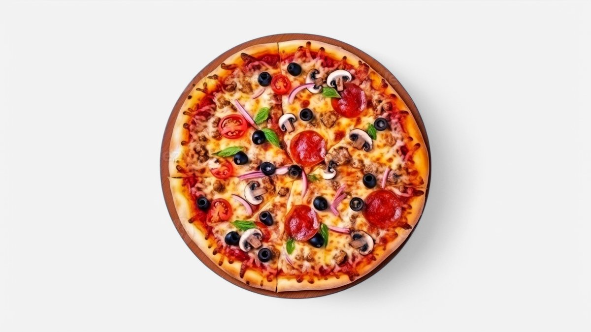 Picas mērce, mocarellas siers, sīpoli, sēnes, tomāti, melnās olīvas, paprika, oregano