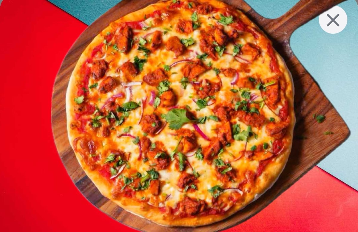 oven 🔥 special tikka masala sauce , mozzarella cheese , chicken , red onion , garlic olive oil , oregano.