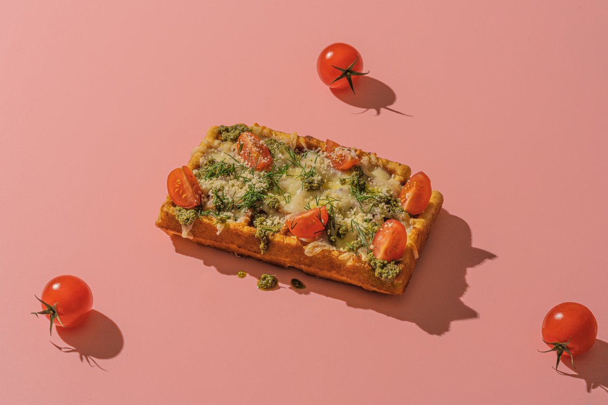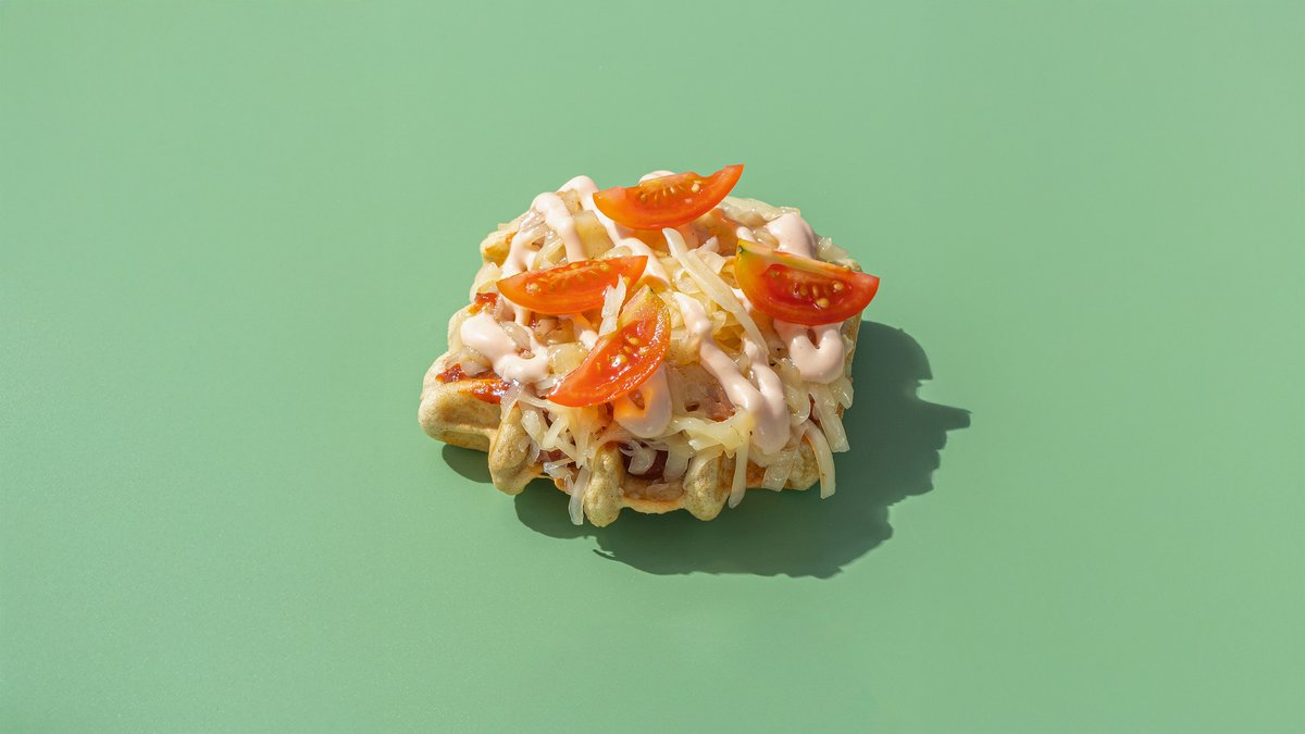 (Sāļā vafelīte,dārza mērce,Mocarellas siers,gaļas pildījums,tomāti,ķiploku mērce un dilles )