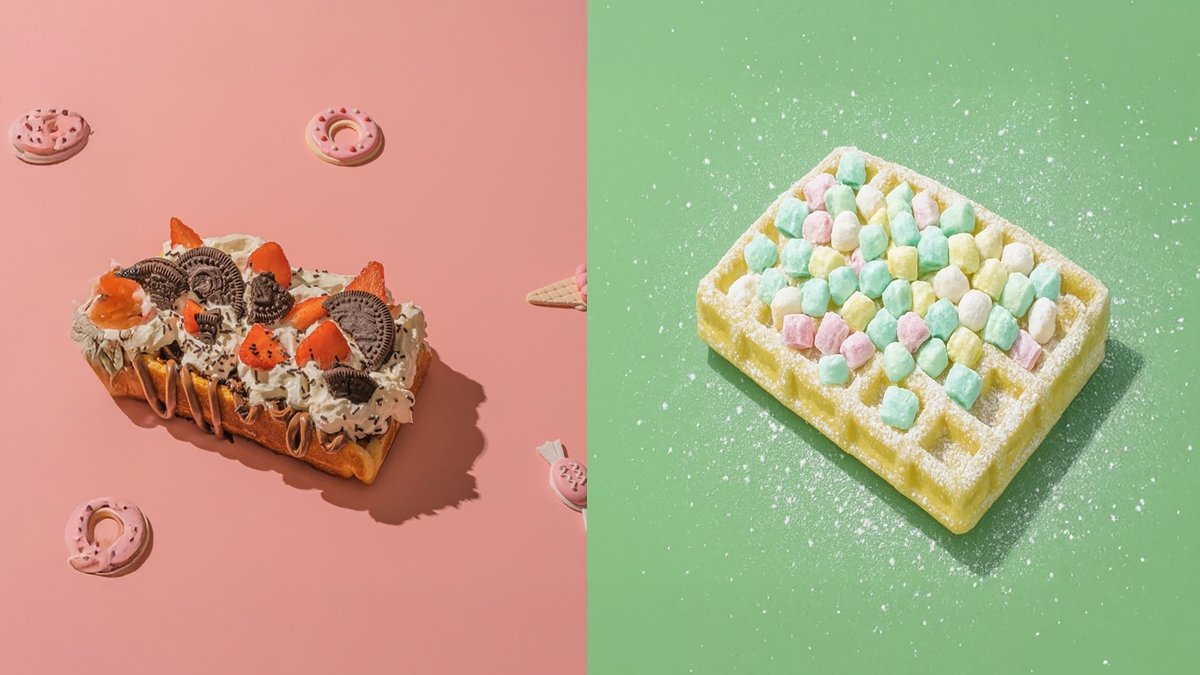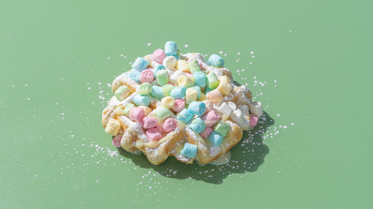 (Saldā vafele , iebiezināts piens ,mini krāsainie maršmello, pūdercukurs )