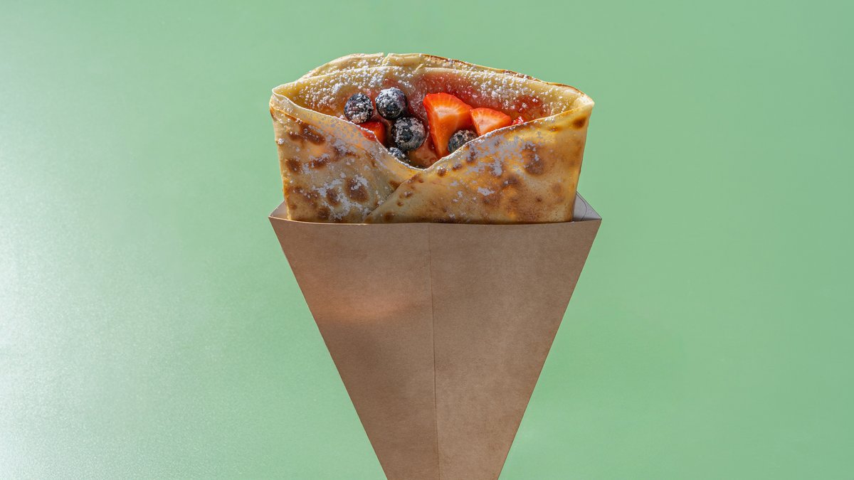 Crepe pankūka , Nutella , banāni , ogas, pūdercukurs