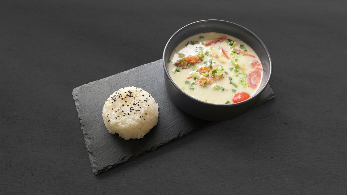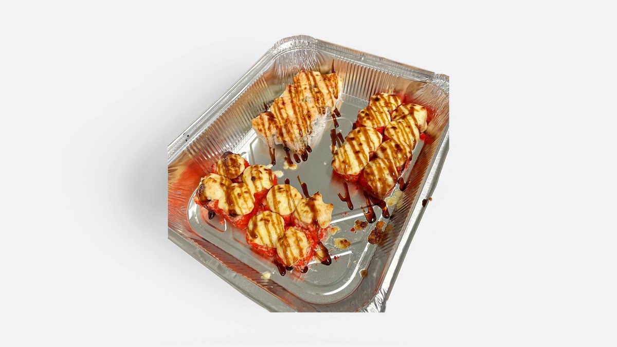 Rīsi,Fīladēlfija siers,Gruķis,bekons,siers ar tomatiem,papriku,lokiem,unagi un Tom Yum mērce
