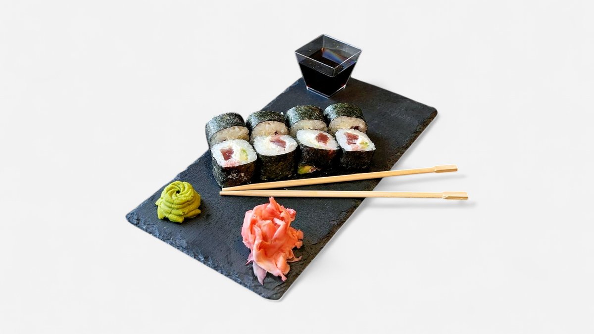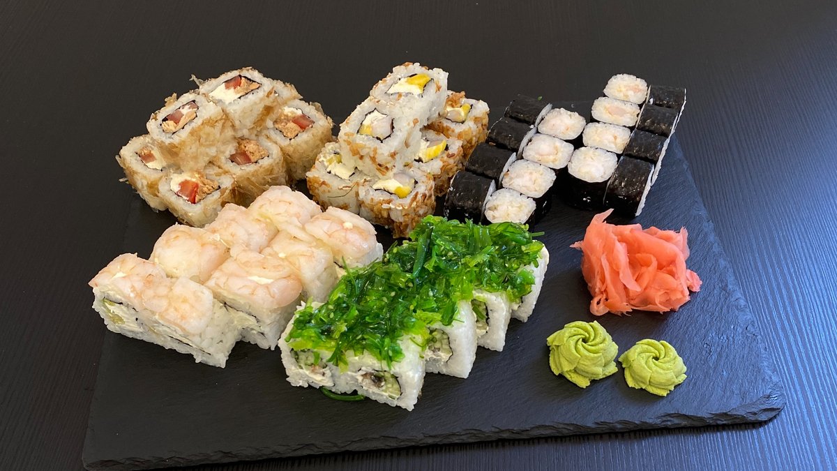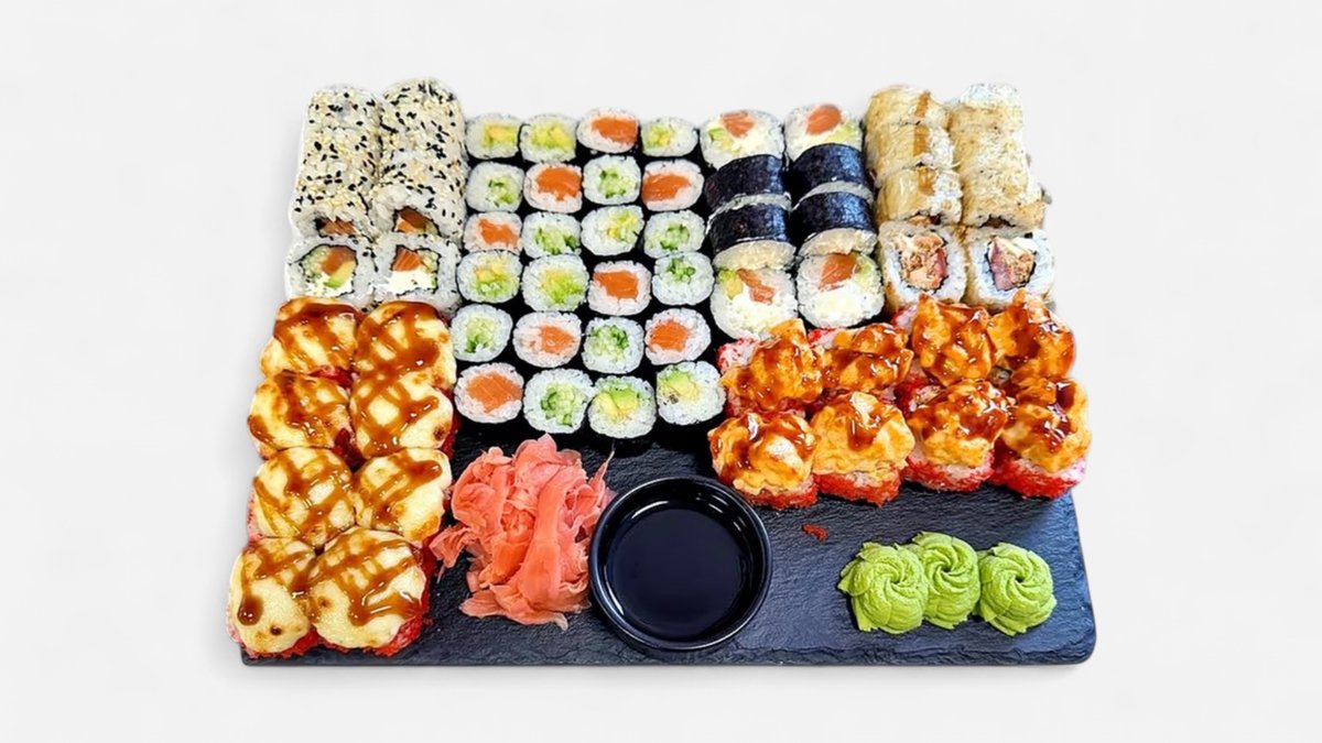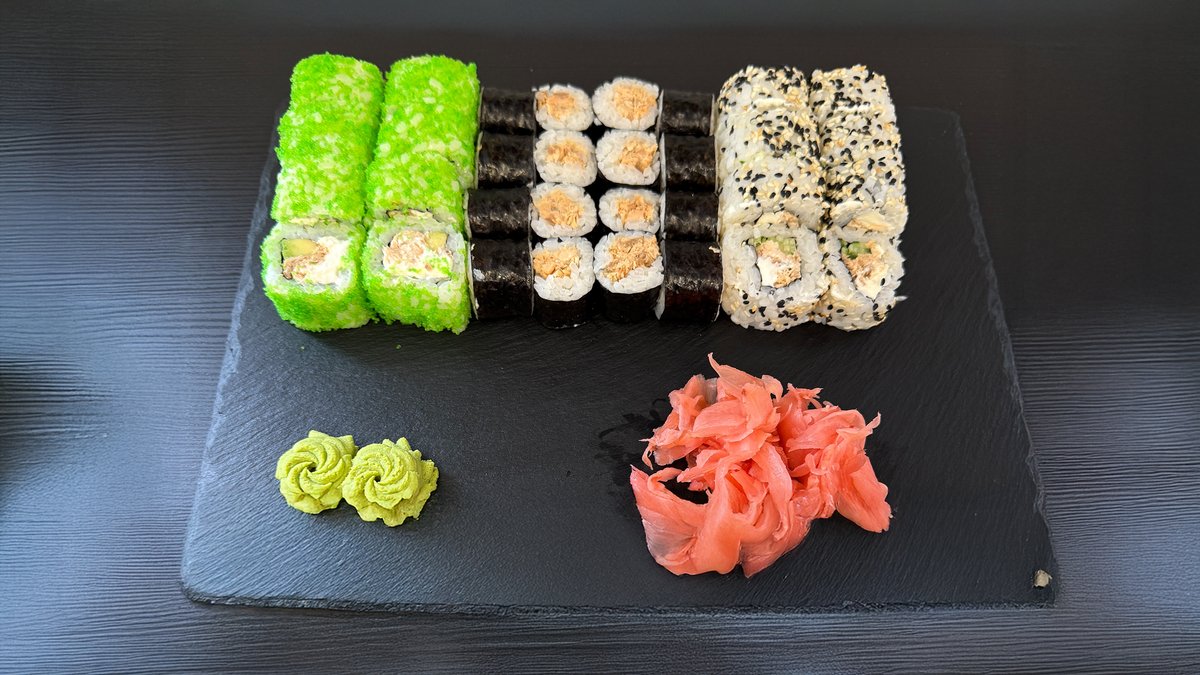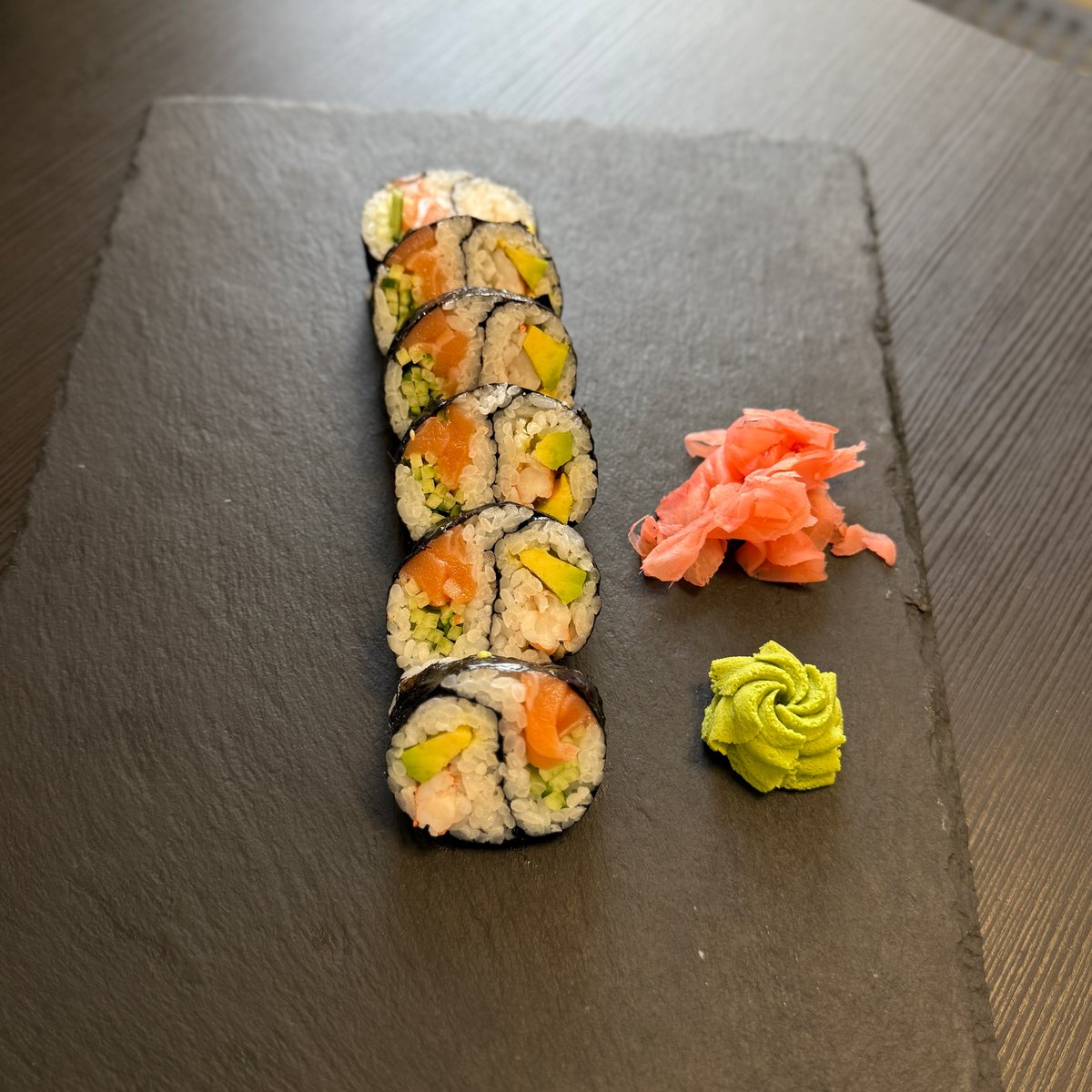 121.Wassabiko maki 144.Tempura Ebi maki 150.California maki 107.Dragon Sake maki 50.Kappa Hosomaki 65.Ebi Hosomaki ar Philadelfiju