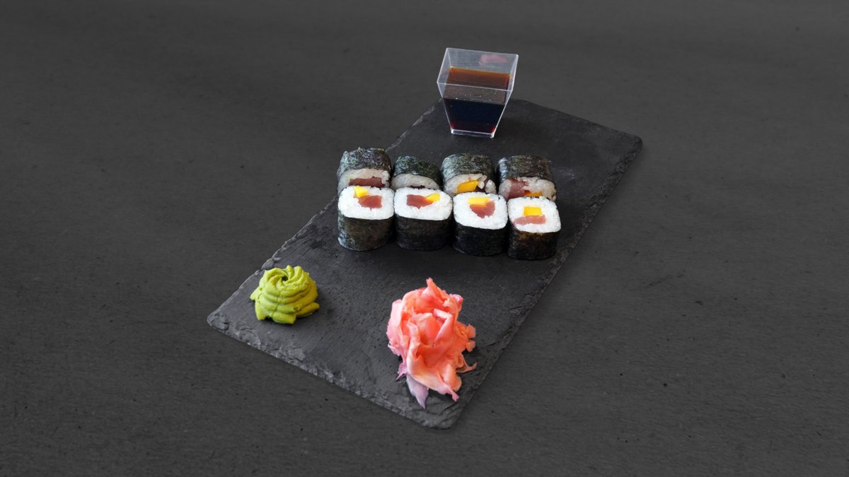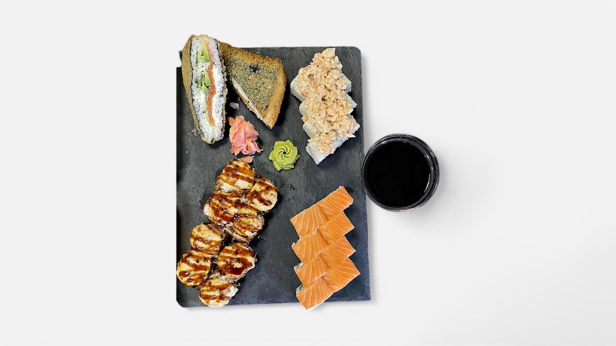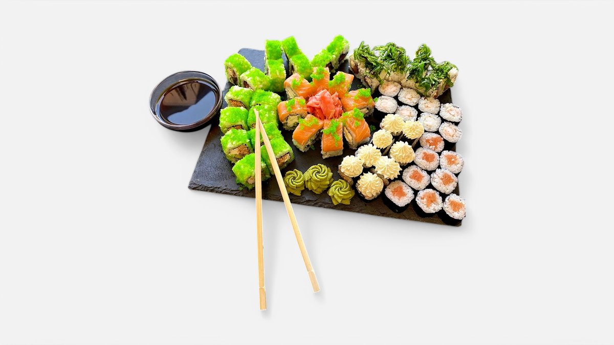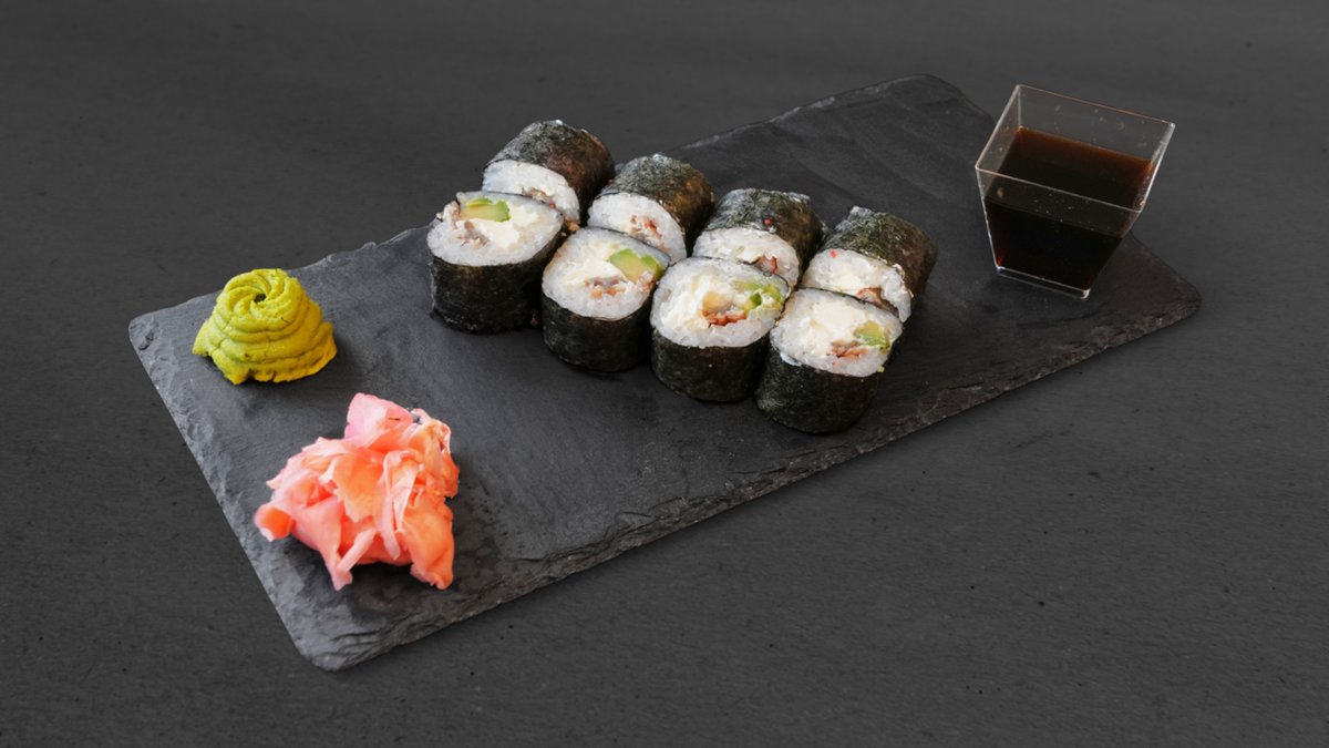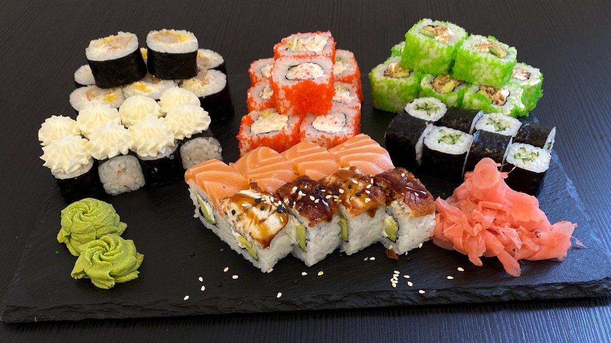 121.Wassabiko maki 144.Tempura Ebi maki 150.California maki 107.Dragon Sake maki 50.Kappa Hosomaki 65.Ebi Hosomaki ar Philadelfiju