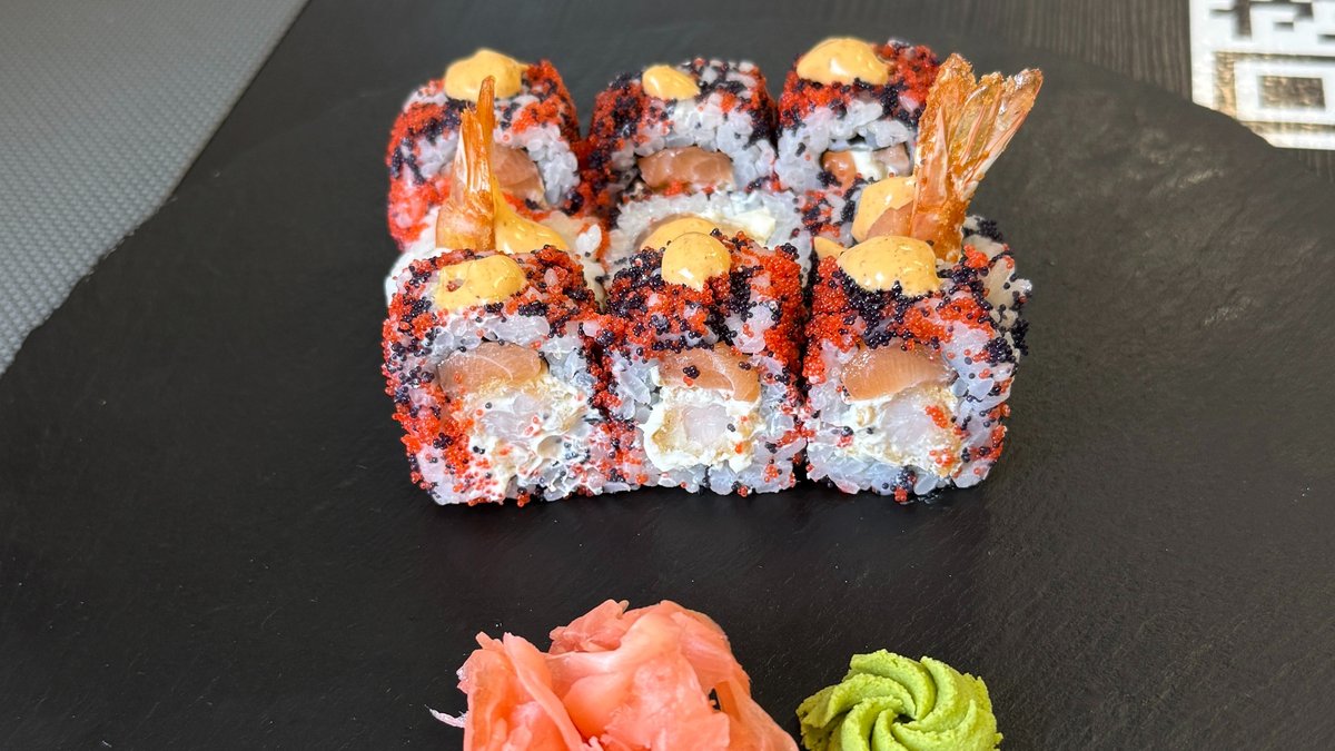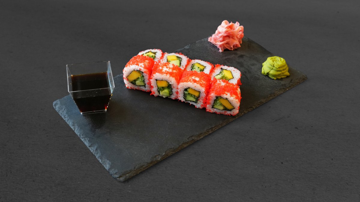 Risi,Gurkis,Mango,garneles ar sieru,sarkana masago