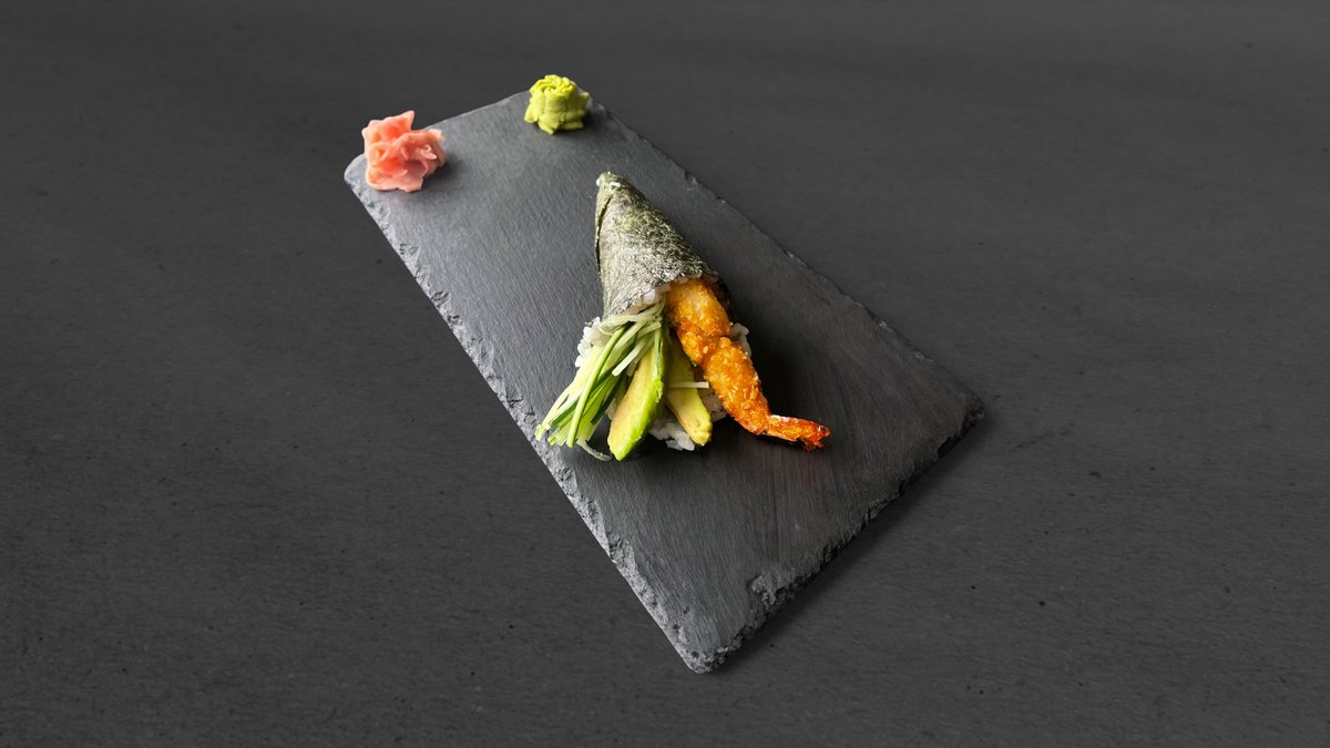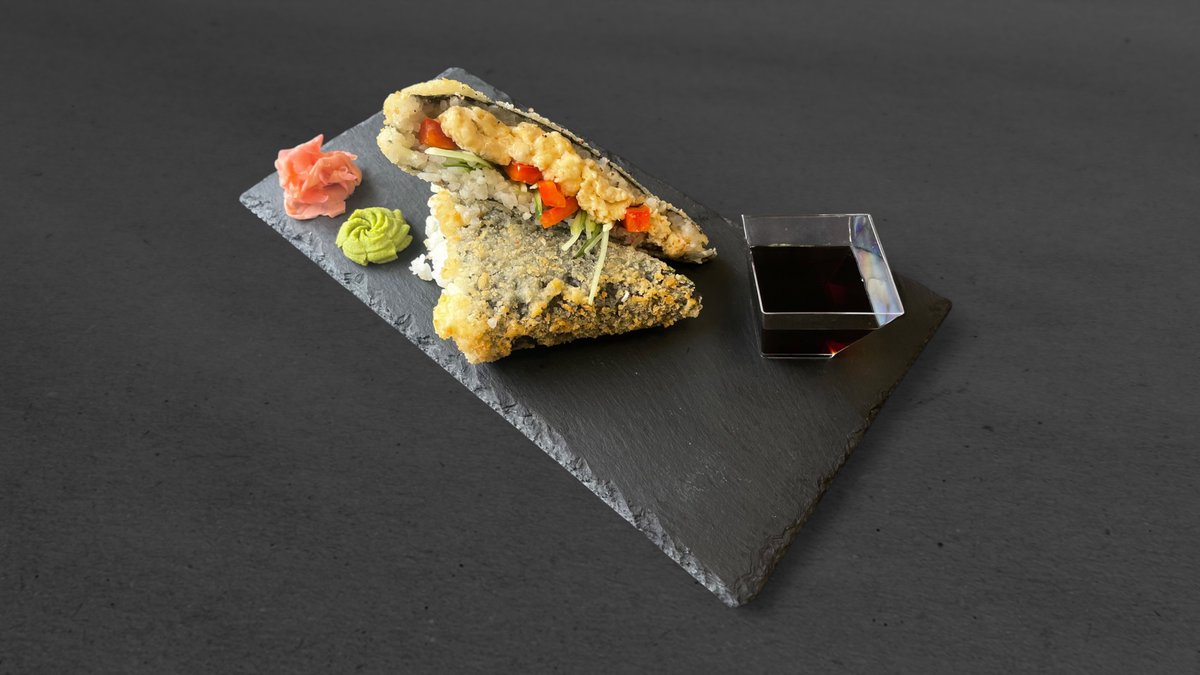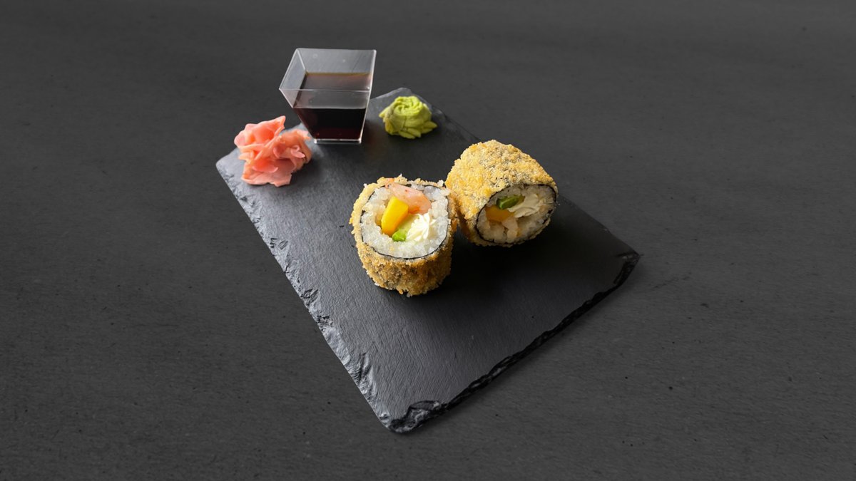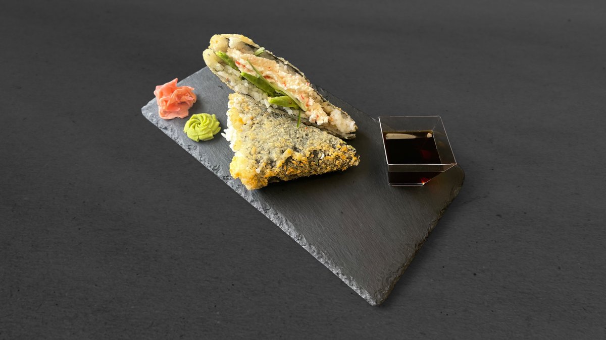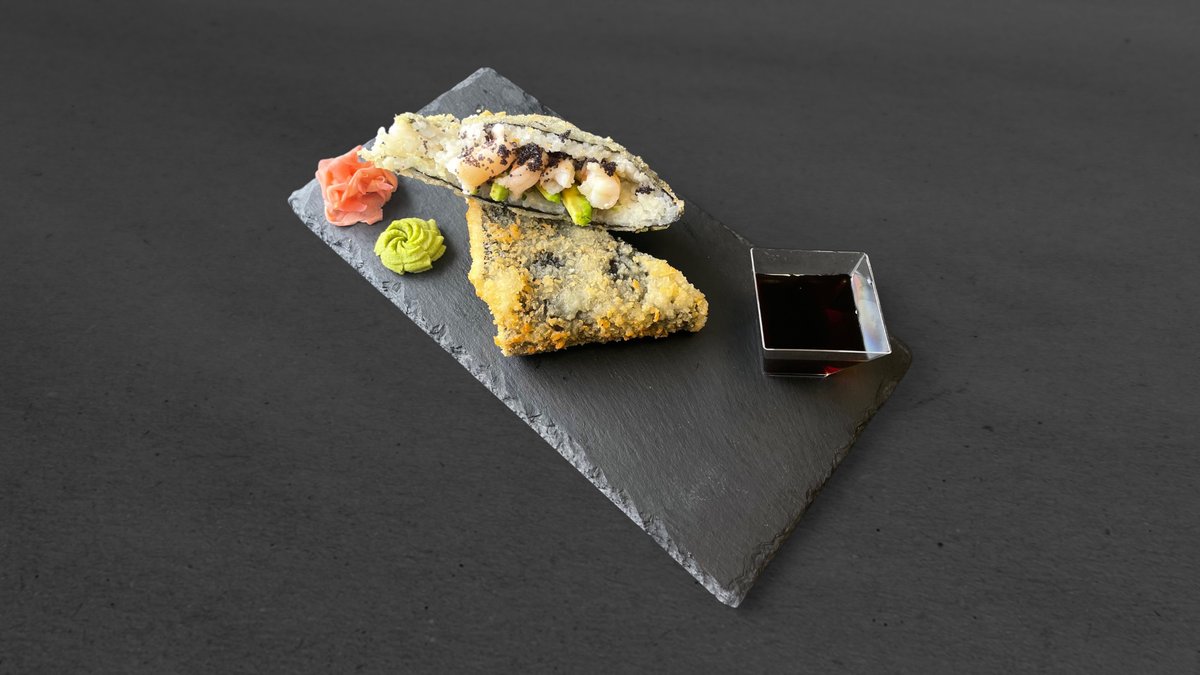 Tempura,Nori,Rīsi, Fīladēlfija,Lasis,Gurķis,Avokado