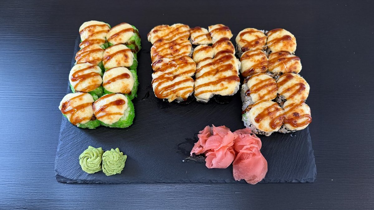 250.Tempura maki ar lasi 323.Kyoto Hot maki 102.Philadelfija Sezam maki 170.Dragon maki