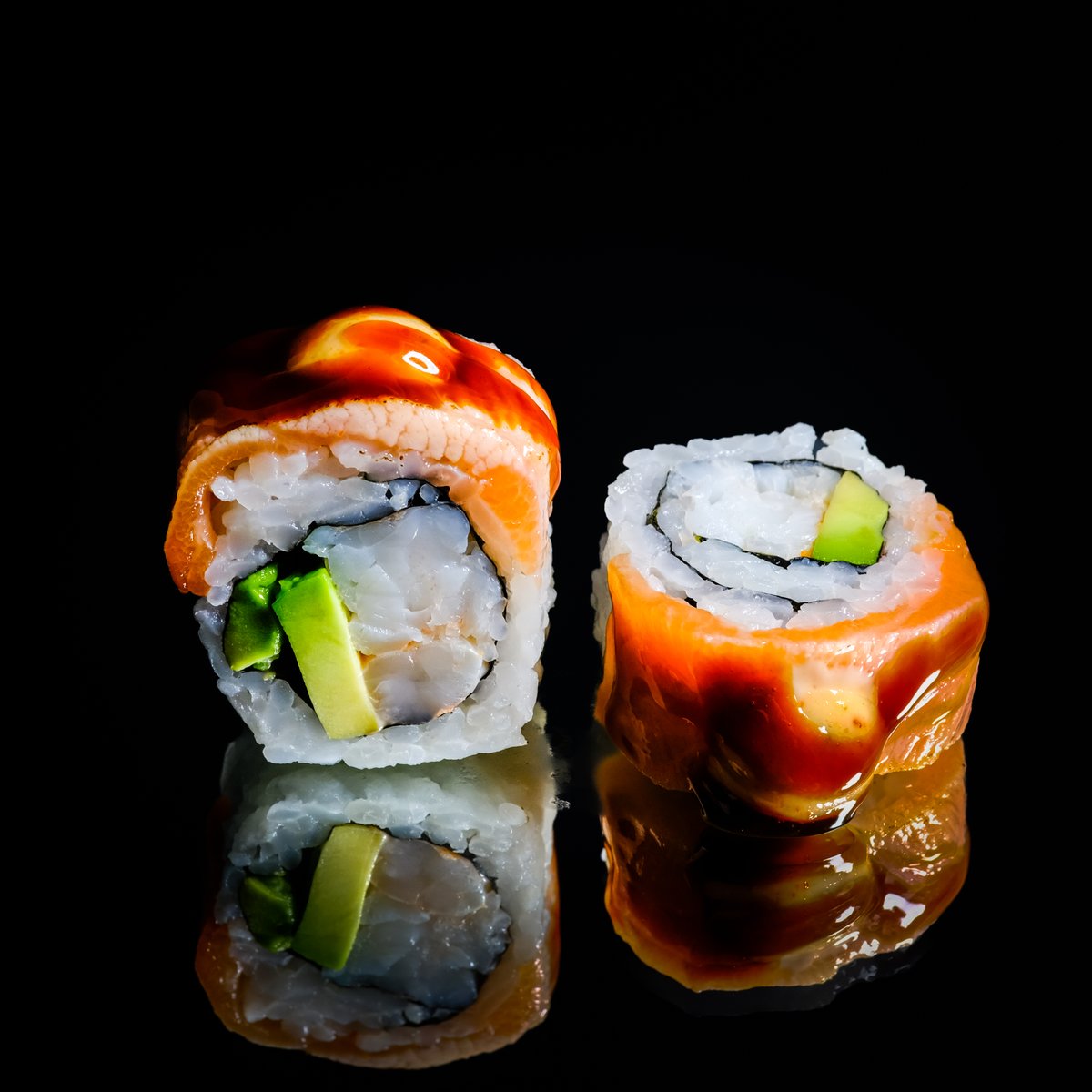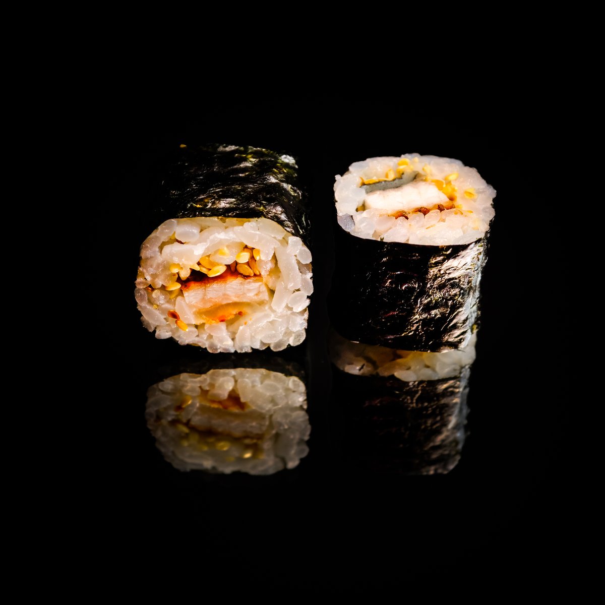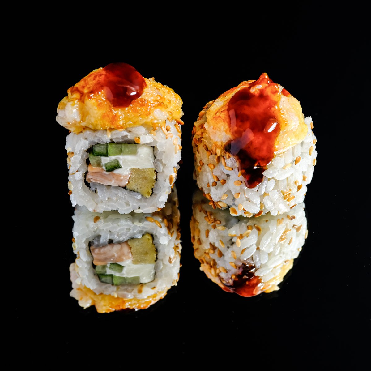 lasis, asā mērce, tobiko ikri, lapu salāti, krēmsiers, avokado, unagi mērce) (1;4;3;7)