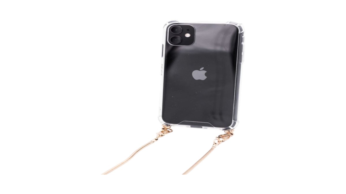 Evelatus - iPhone 11 Pro Silicone Transparent with Necklace TPU Strap Gold