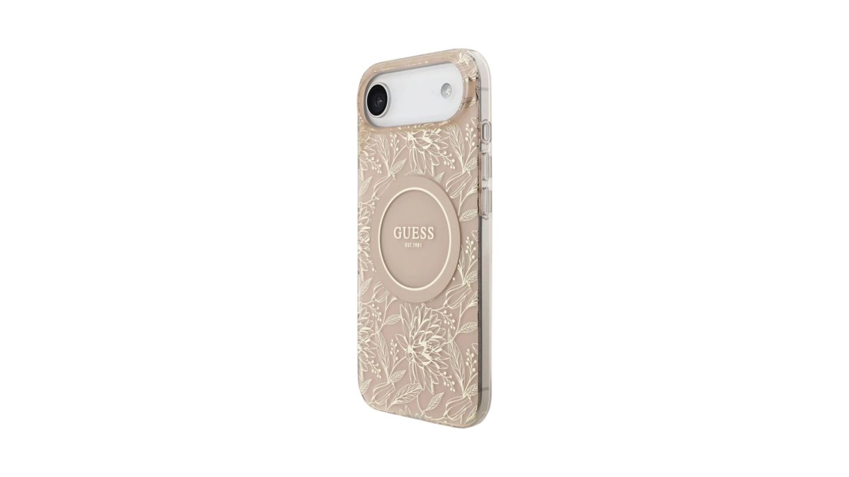 Guess - iPhone 17 Air Silicone case with MagSafe Flowers Allover with Pearl Strap Pink