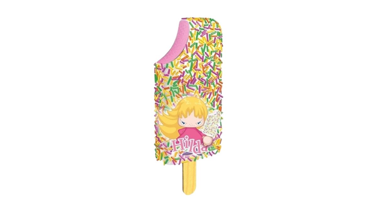 Saldējums Hilda zemeņu ar cukura dekoriem, uz kociņa Glass 0.065kg