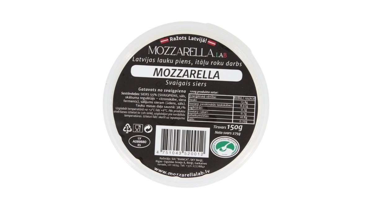 Svaigais siers Mozzarella Mozzarella.lab 0.15kg
