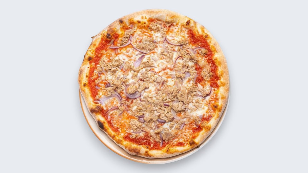 доматен сос, кашкавали, туна, печени шери домати, маслинки