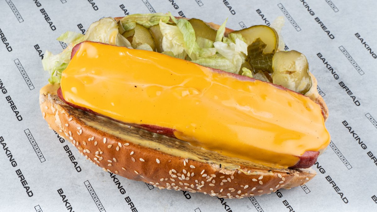 Хот дог лепче, виршла, мед и сенф сос, ајсберг, кисели краставици, чедар x3