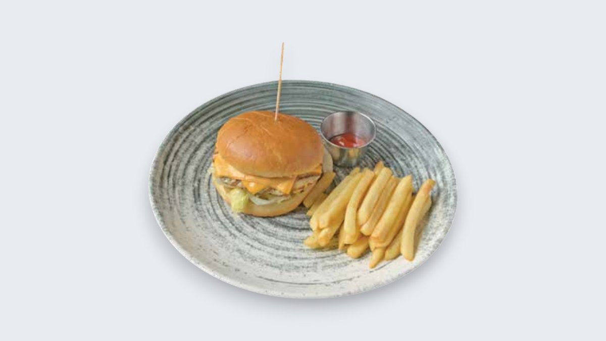 Плескавица со кашкавал, кајмак, помфрит