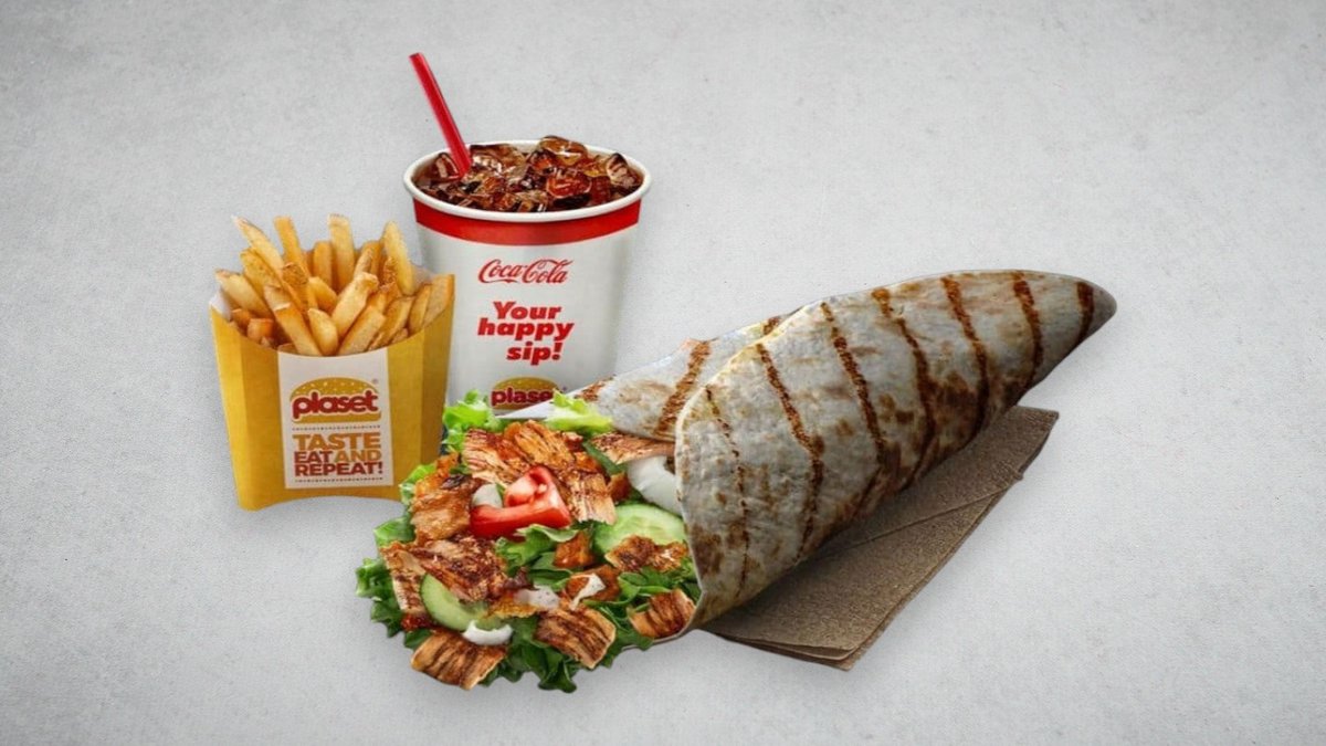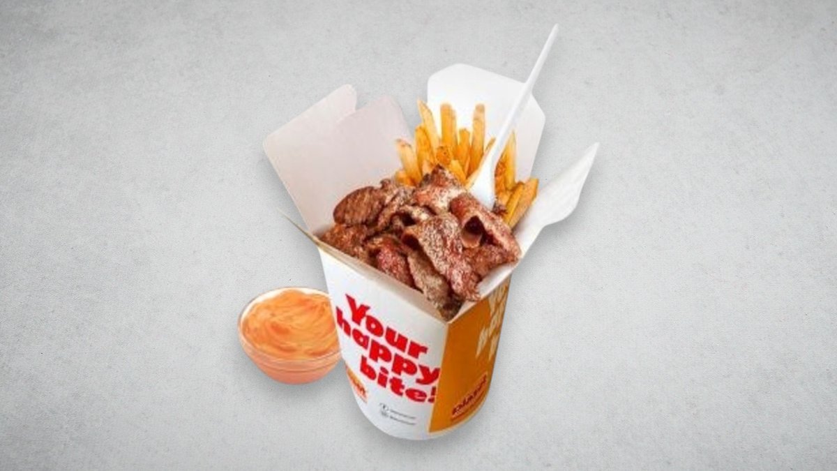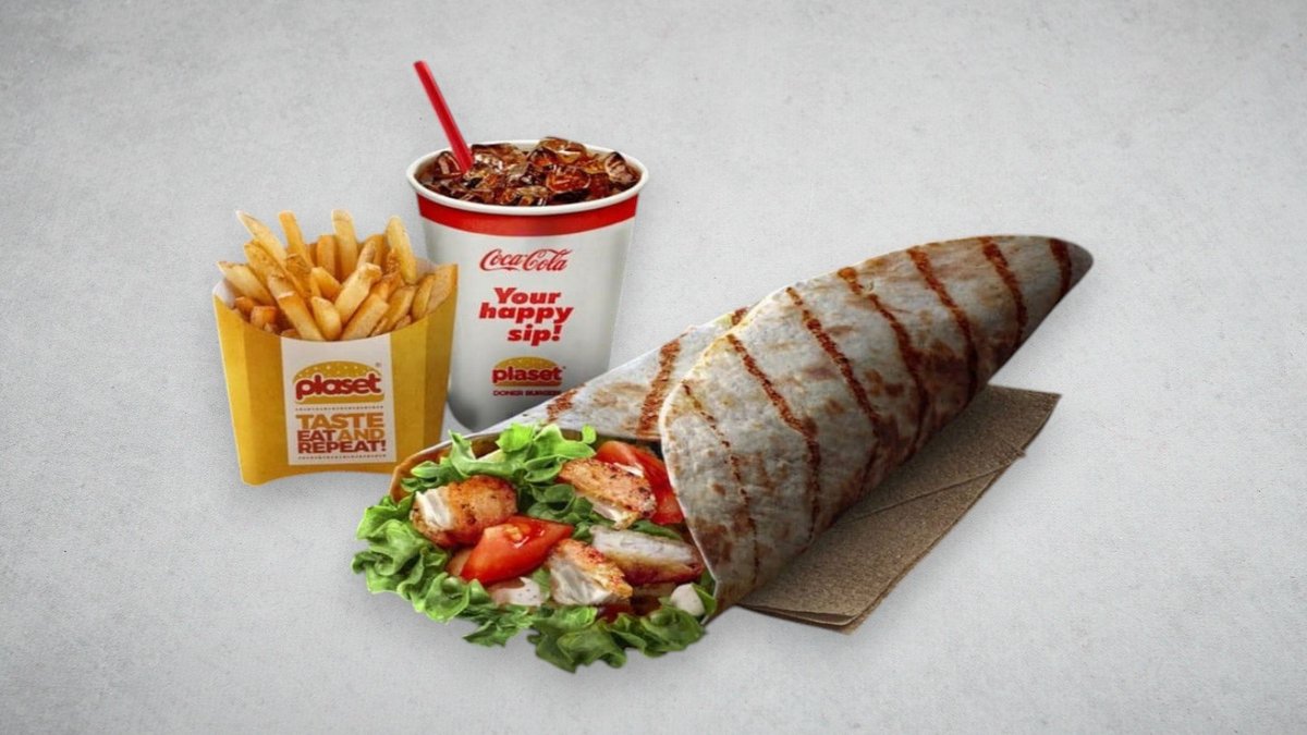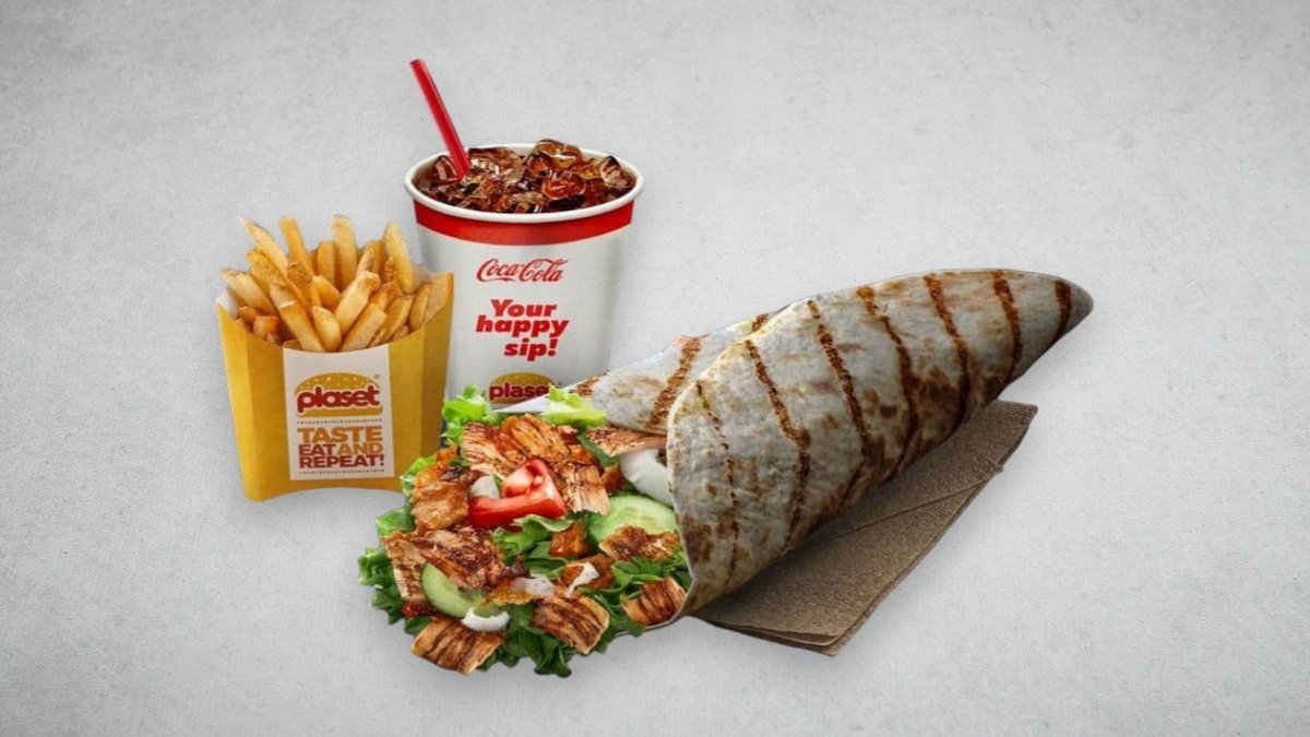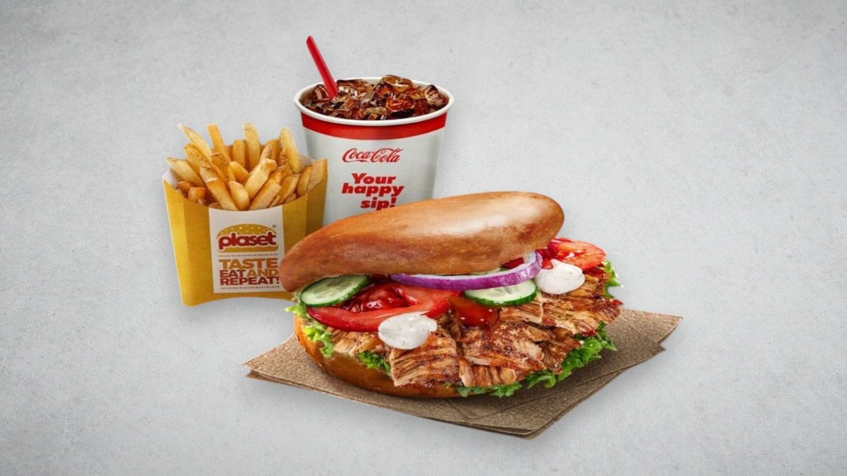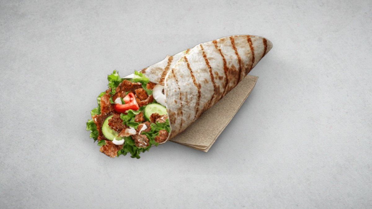Говедско и пилешко месо, микс салата, зелка, кромид, моркови, кисели краставички, бел сос, лут сос, andalouse сос, samurai сос