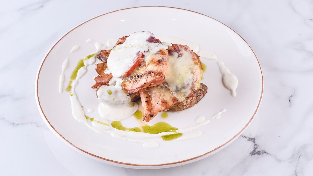 Пилешки стек со моцарела и пршут во сос