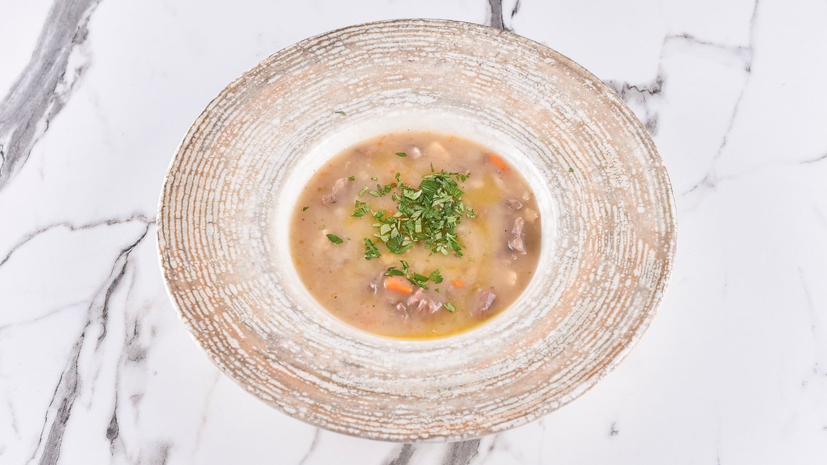 300гр., телешки мускул, пашканат, целер, морков, целер, кромид