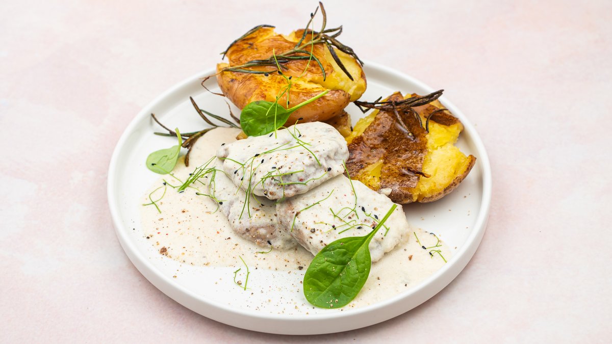 Телешки медаљони со сос од печурки
