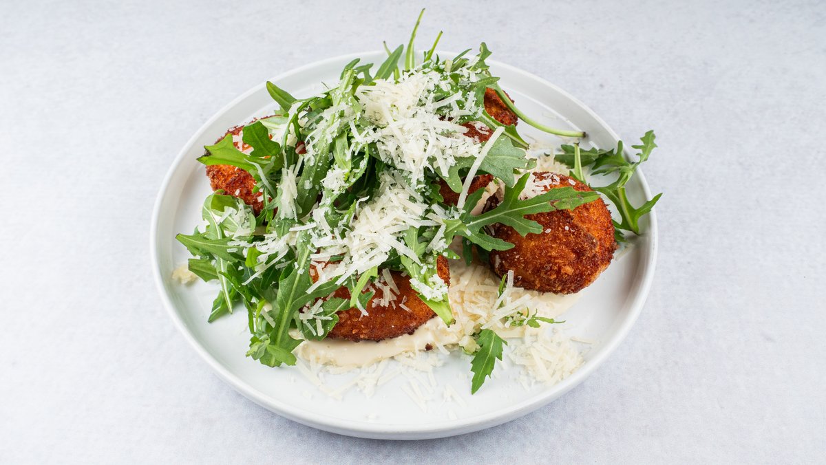 Пржени крокети од сладок компир наросени со пармезан и сос од сино сирење