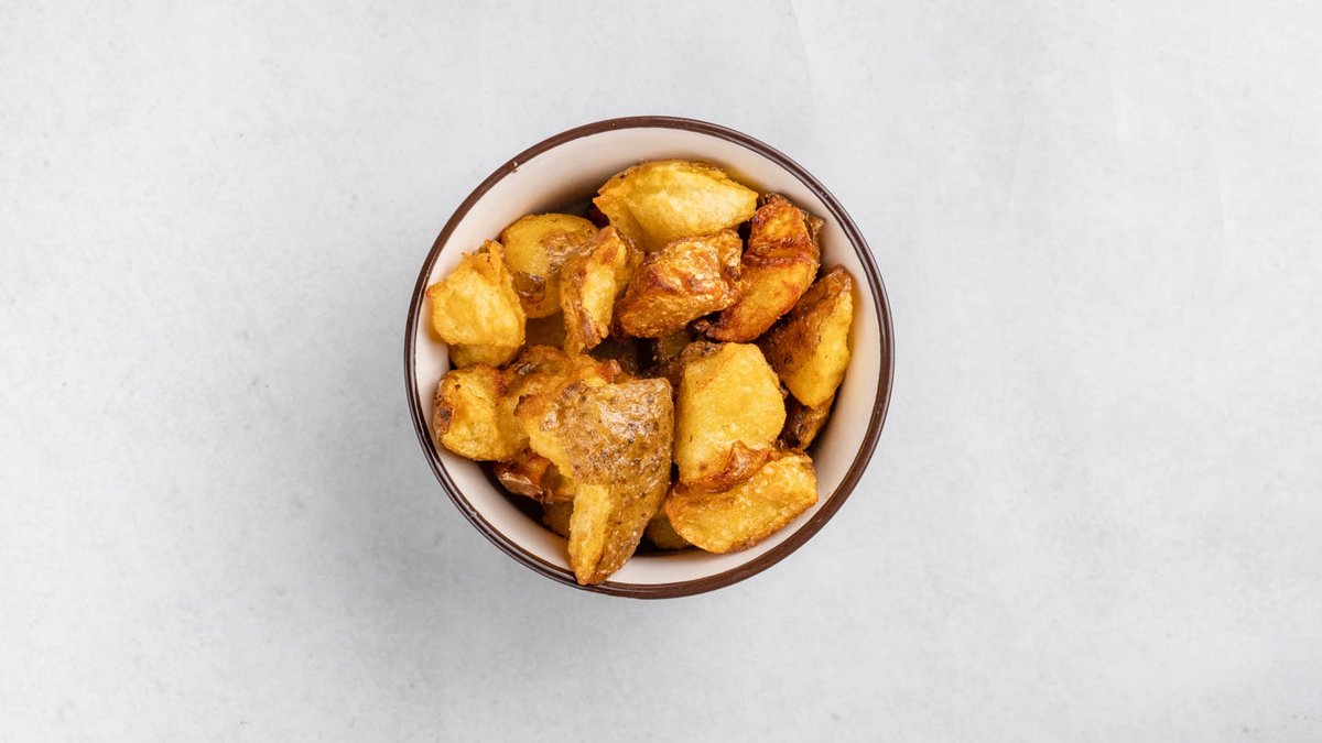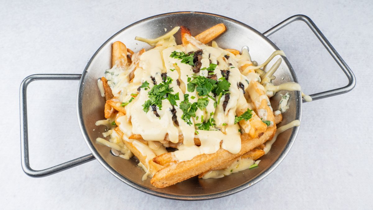 Крцкави компирчиња со топен кашкавал и сино сирење, умами печурки и домашен ремулад сос