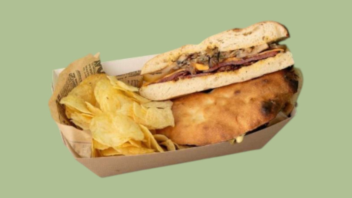 Seasoned beef, grilled peppers, raw onions, fries, cheese & BBQ sauce in a toasted wrap