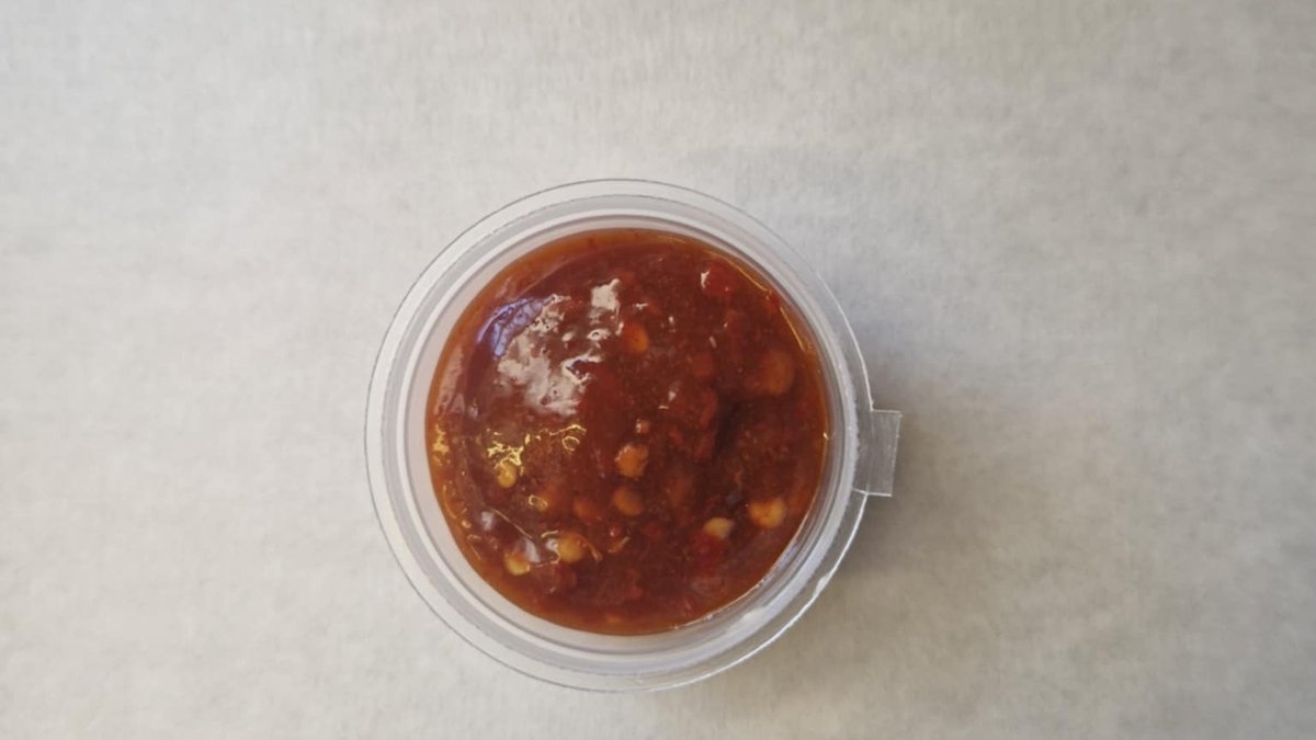(Homemade) A crunchy, spicy chicken fillet topped with jalapeños and Extra Hot Chili sauce, all inside a soft toasted bun. Comes with ketchup and mayo on the side