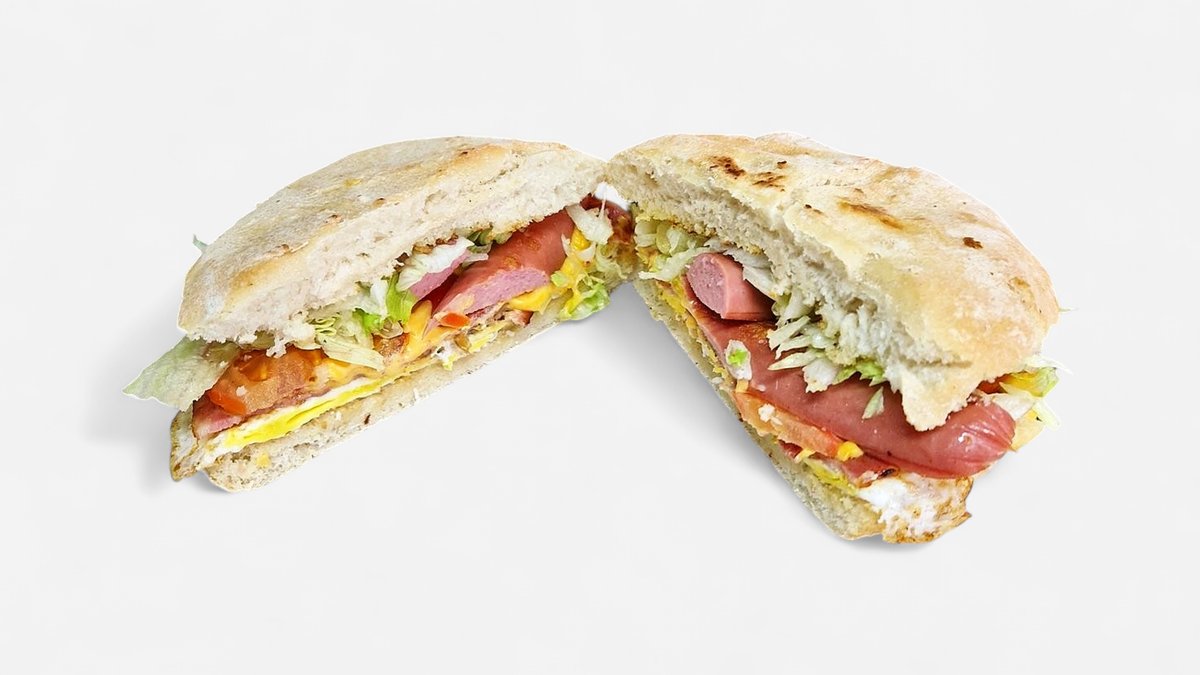 Wudy sausage with melted edam cheese, jalapenos and salad served with ketchup, mayonnaise and your choice of side