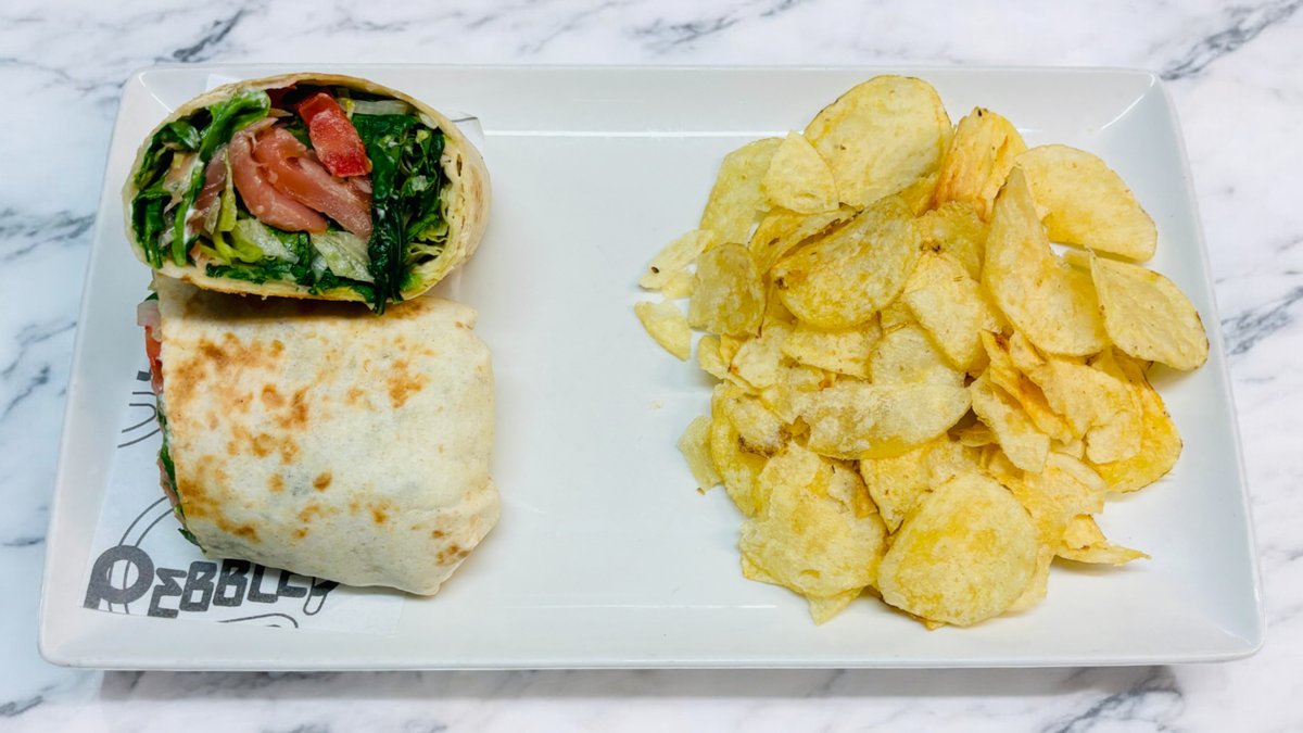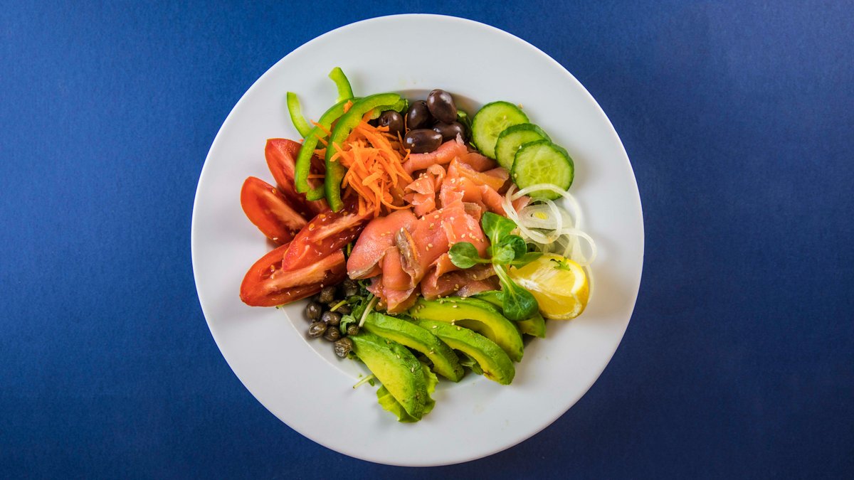 Smoked salmon, cream cheese, rucola, tomato and onions