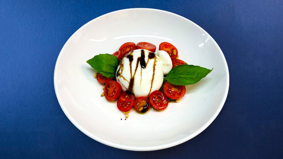 Toasted local bread, topped with tomatoes, basil, garlic, onions, olives and capers