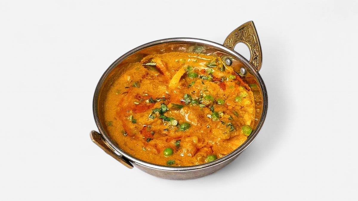 Tender pieces of chicken cooked with tomatoes, cashew nuts and fenugreek, finished with butter and cream
