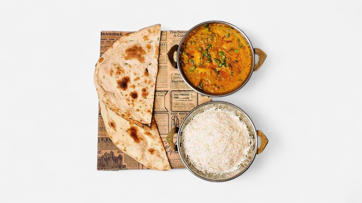 Basmati rice, chicken tikka cooked with a blend of Indian spices flavoured with saffron and mint