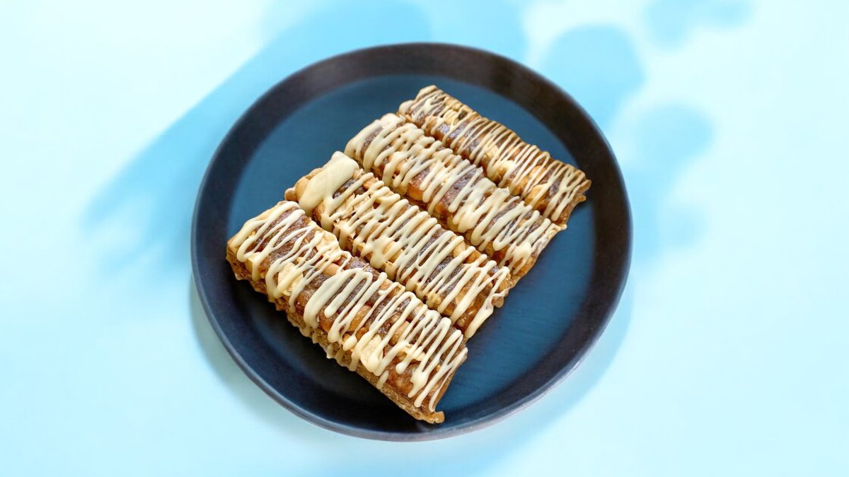 Flaky, golden pastry wrapped around warm spiced apples, raisins, and a touch of cinnamon. Served with a dusting of sugar and all the cozy vibes.