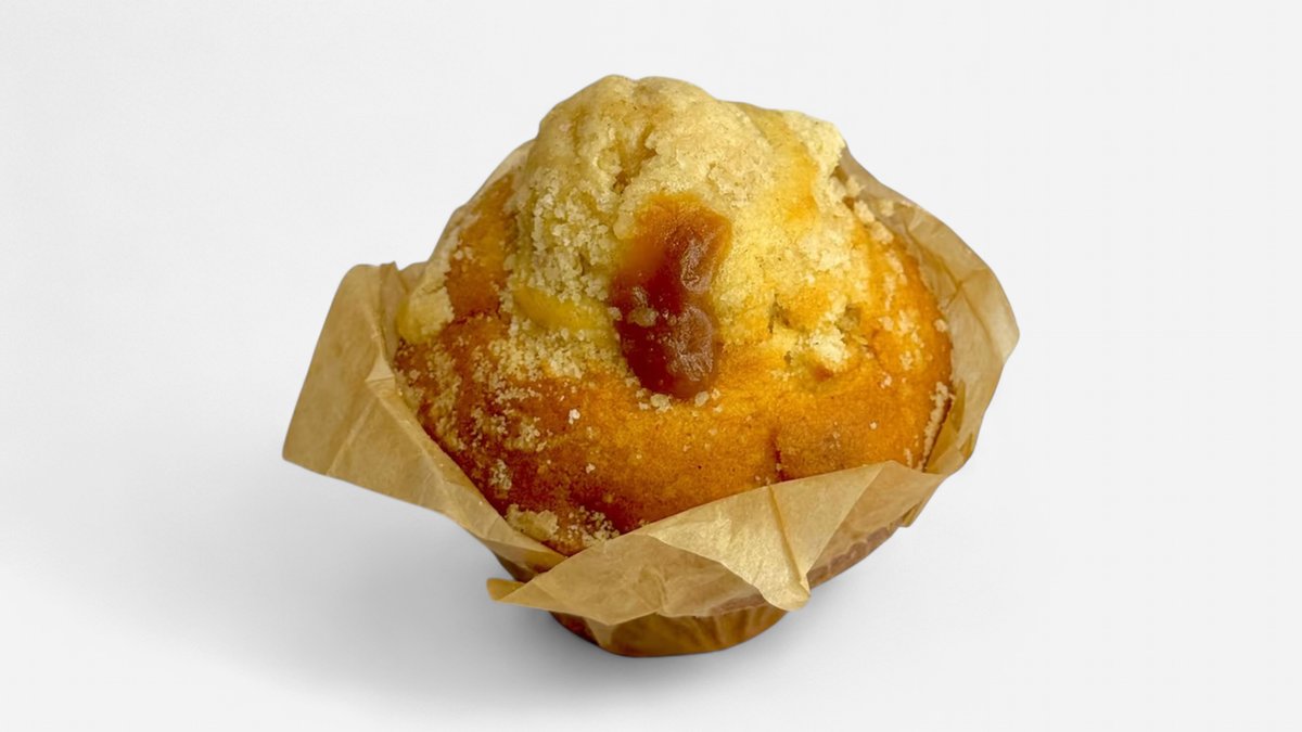 A cozy classic. Soft muffin with sweet apple pieces and a hint of warm cinnamon—like a hug in every bite.