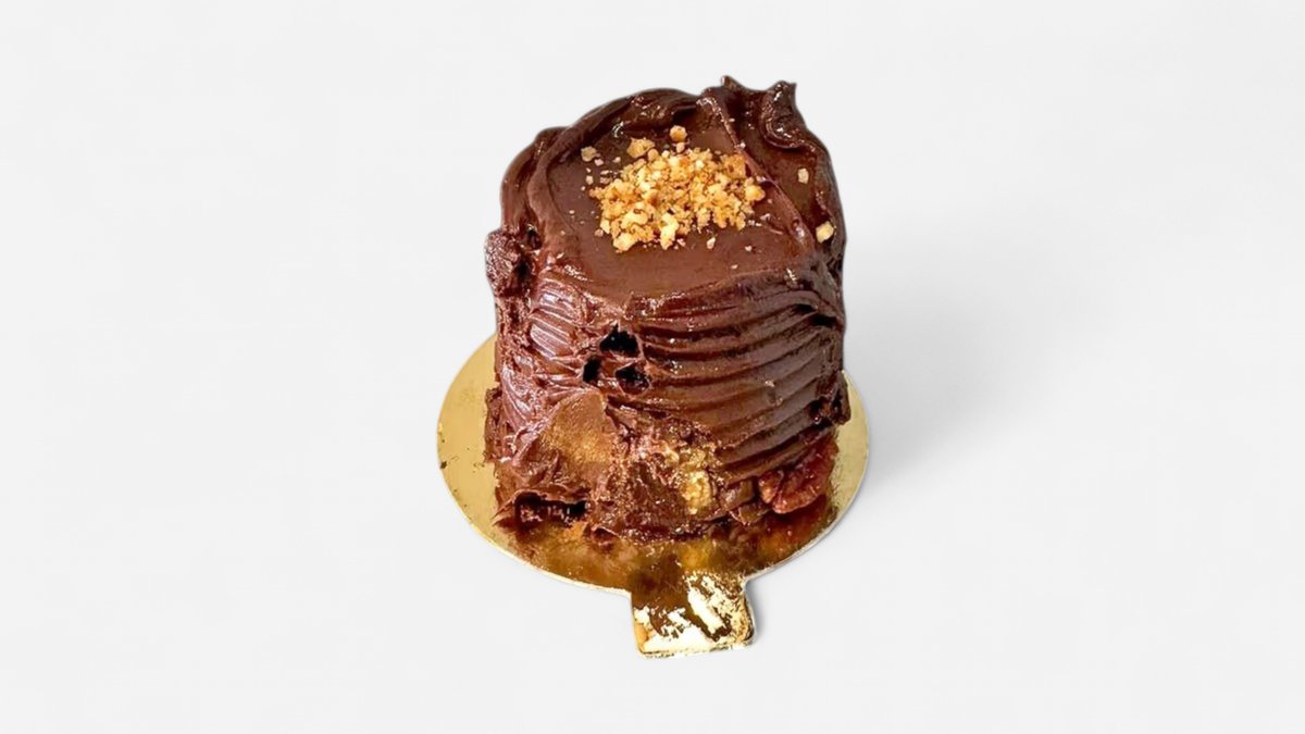 Layer of chocolate cake made with cocoa from Ecuador, filled with chocolate and hazelnut creams and a hazelnut crunch, covered with a chocolate glaze.