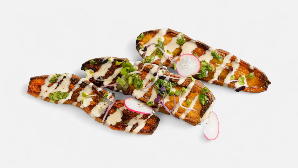 Grilled avocado served over a fresh mix of salads, wholesome grains, fermented vegetables, micro herbs, Chimichurri and black rice.