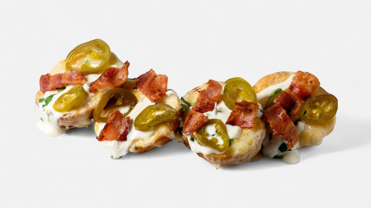 Tomato sauce, mozzarella, emmental italico, blue cheese, parmesan shavings, crispy bacon, jalapeños, sesame seeds and oregano