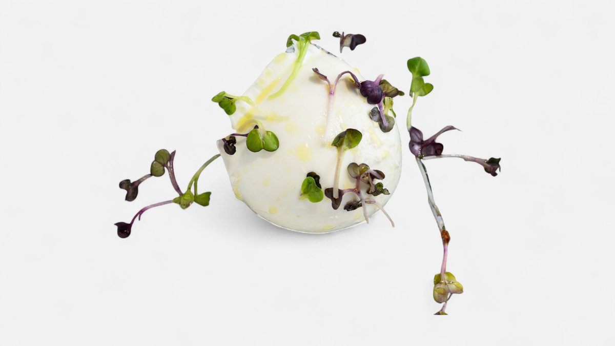 Mozzarella, crispy guanciale, extra virgin olive oil and homemade cream of pistacchio, sesame seeds and oregano