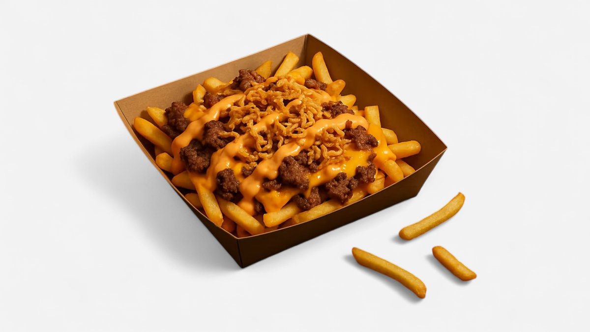 Crispy fries topped with a smashed beef patty, melted cheese and crispy fried onions
