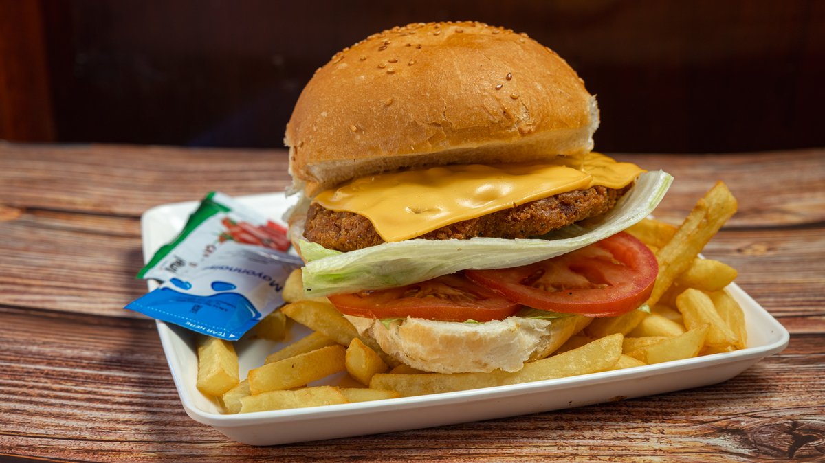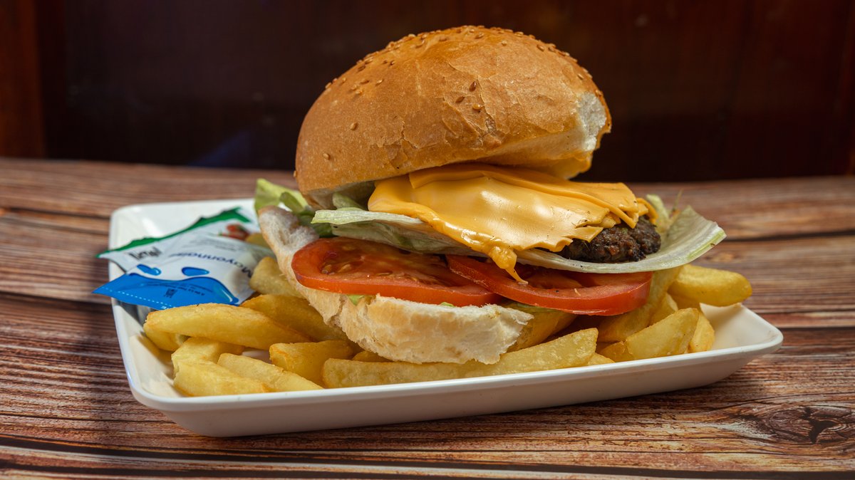 Beef and lamb burger, cheddar cheese and swedish sauce. Served with a fresh salad