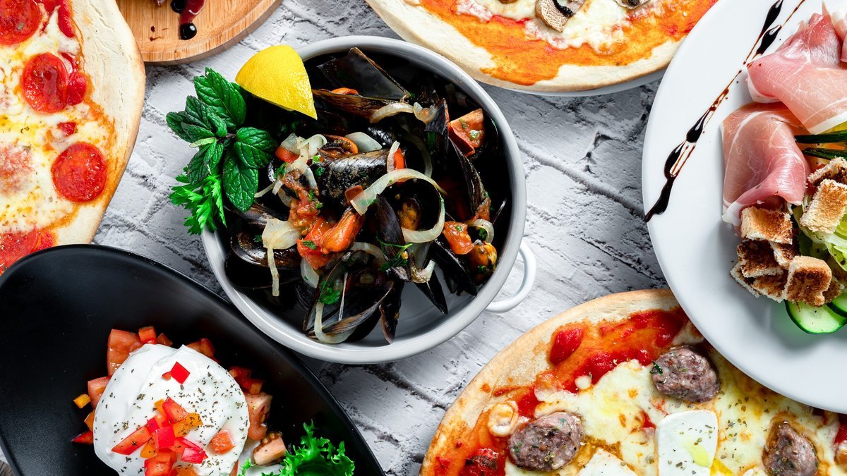 Neapolitan sauce, mixed seafood, tuna and olives.