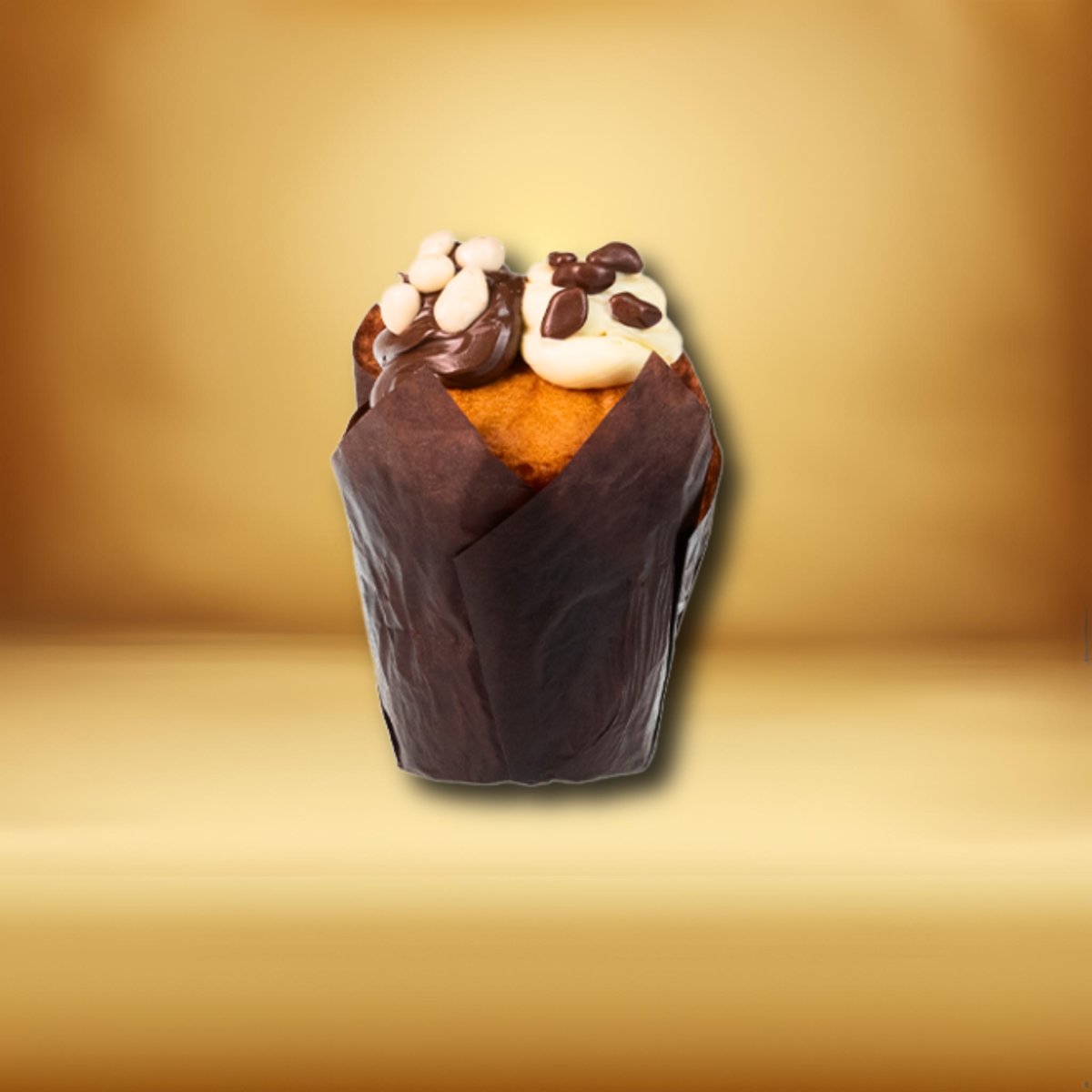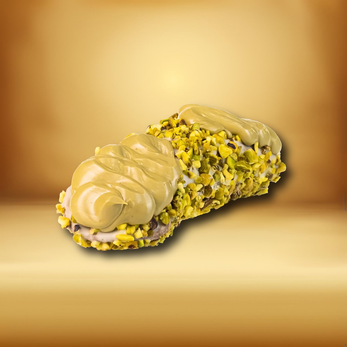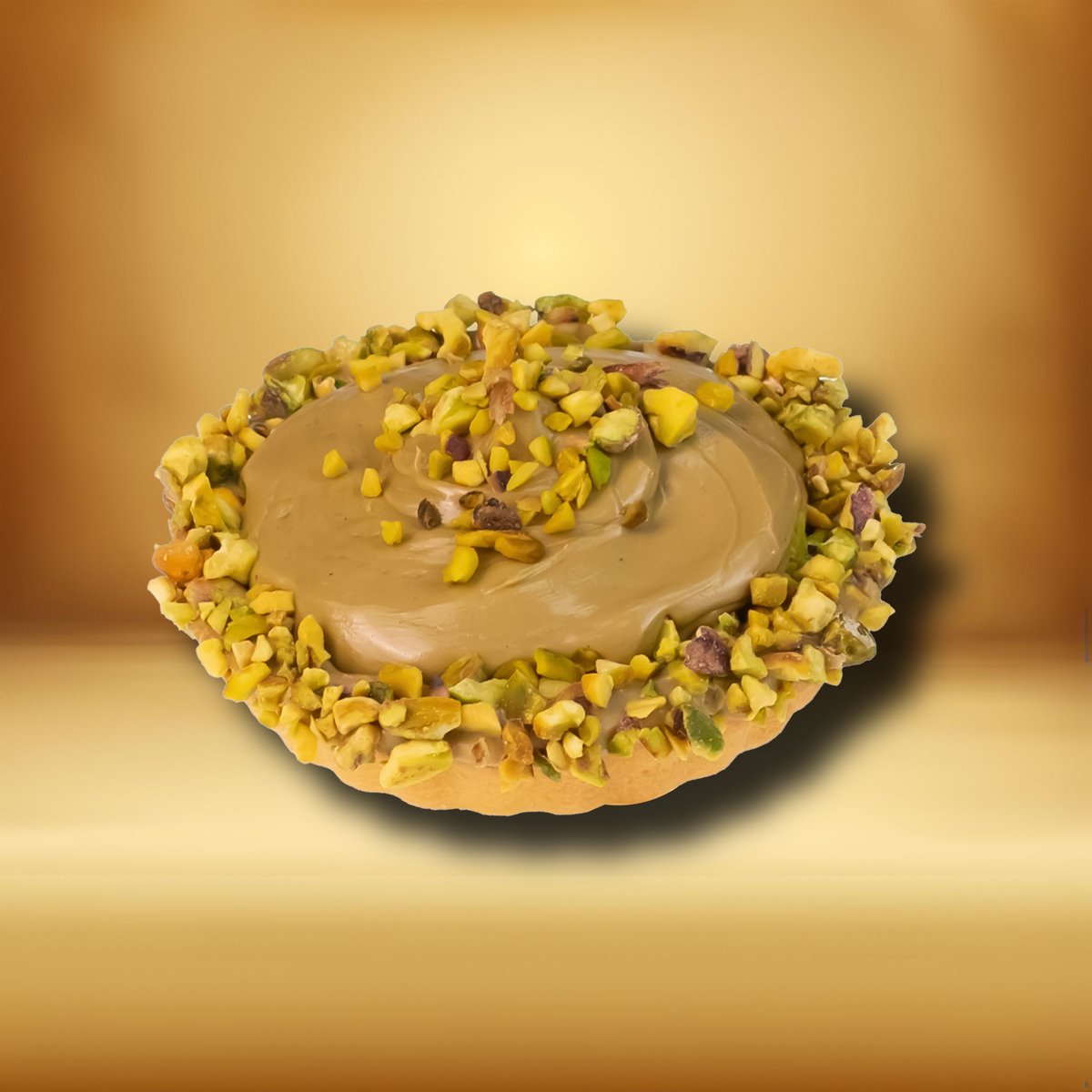 Muffin filled with pistachio cream and topped with chopped pistachios