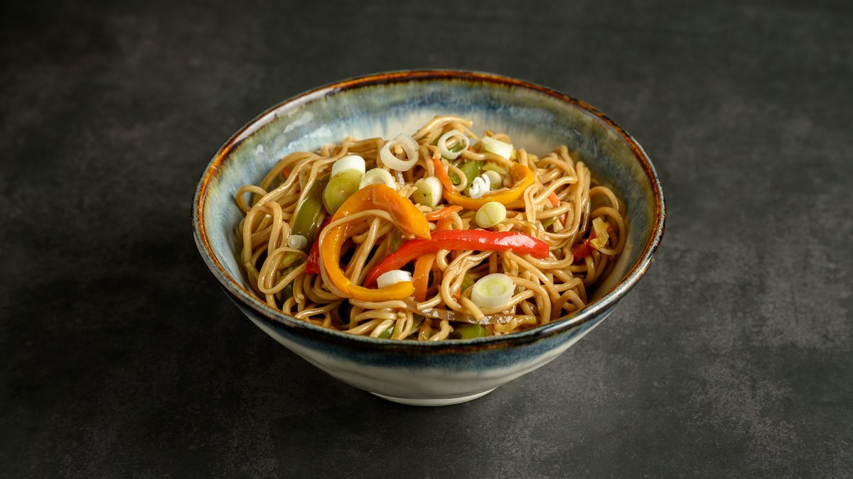 A colorful blend of cabbage noodles, carrots, green, red and yellow bell peppers, onions, and spring onions, all stir-fried in flavorful soy sauce for a light yet satisfying dish! 🥢
