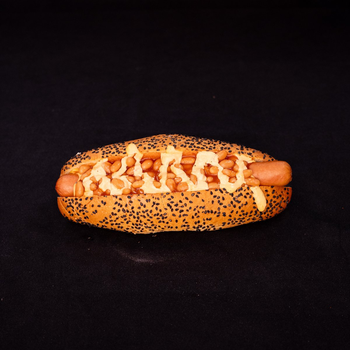 CLASSIC HOT DOG, BAKED BEANS, CARAMELISED ONION, NACHO CHEESE, KETCHUP, CRUSTHY ROLL, FRIES