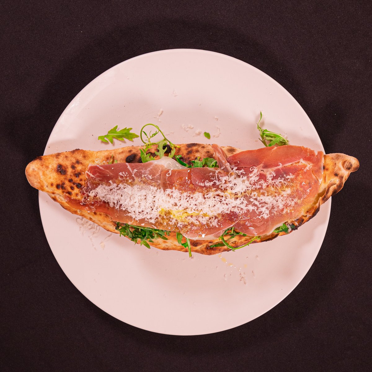 MOZZARELLA FIOR DI LATTE, GARLIC TRUFFLE CREAM CHEESE, MUSHROOMS, RUCOLA, GRANA, PARMA HAM