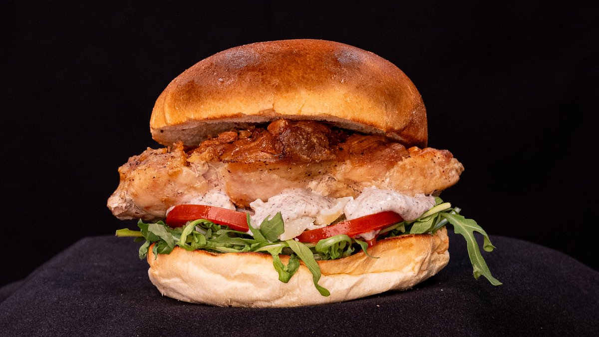 GRILLED CHICKEN BREAST, CRISPY ONIONS, RUCOLA, TOMATOES, TRUFFLE MAYO, GRANA PADANO SHAVINGS, TOASTED BRIOCHE BUN, FRIES