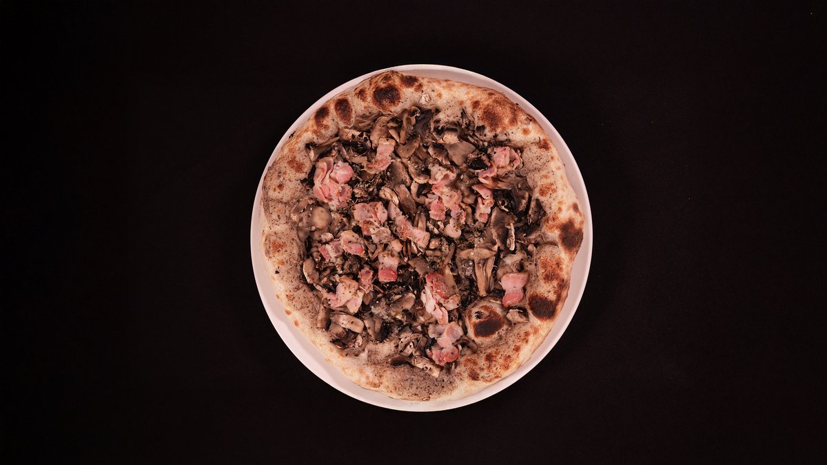 MOZZARELLA FIOR DI LATTE, TRUFFLE PASTE, MUSHROOMS, BACON, GARLIC OIL, OREGANO