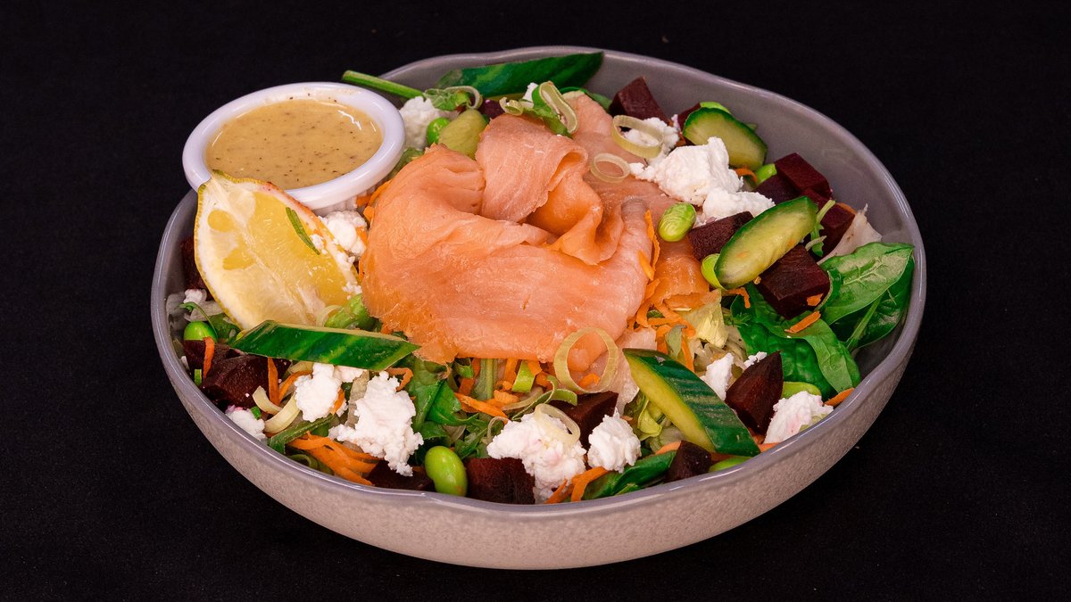 SMOKED SALMON, MIX GREENS, CARROTS, RICOTTA CHEESE, BEETROOT, EDAMME BEANS, SPRING ONIONS, HONEY & GRAIN MUSTARD DIP