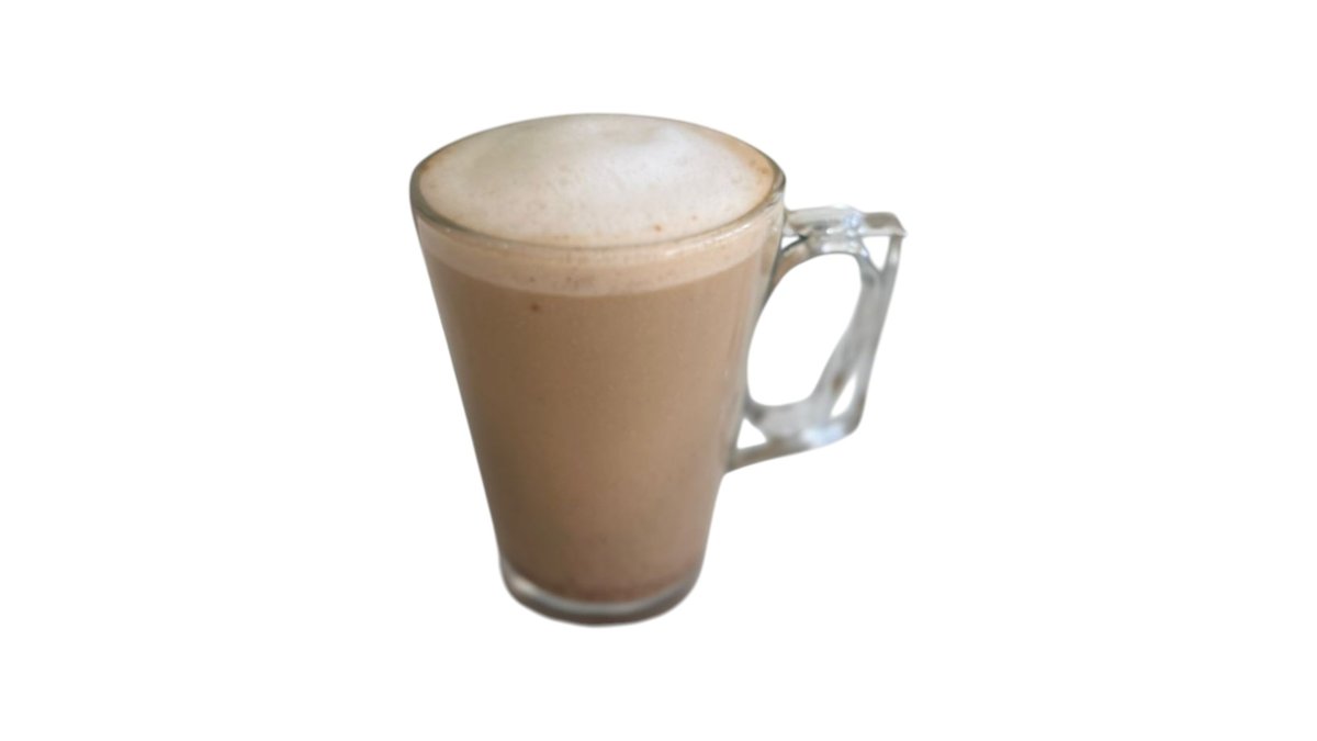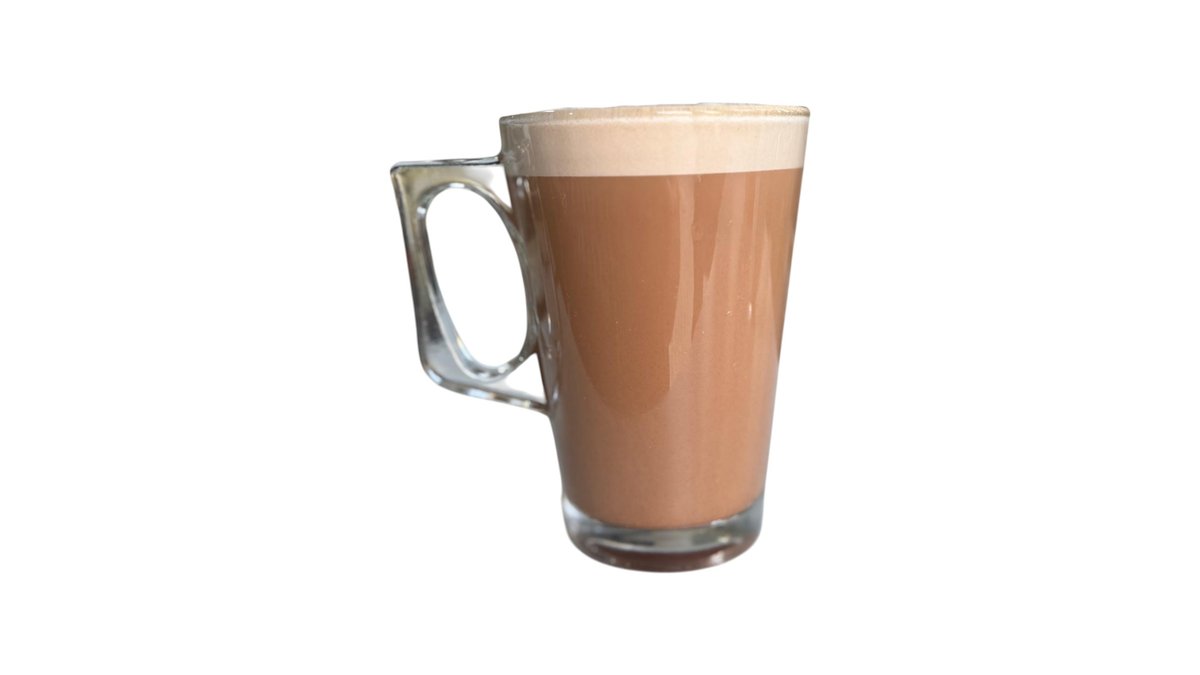 Served warm: Organic raw cacao, organic coffee, medjool dates, chia seeds, organic almond milk, organic-grass fed whey protein, lion's mane Nutritional Info: Energy 1358.8kJ 324.5kcal (16% RI); Fat 6.5g (9% RI), of which saturates 1.6g (8%), of which mono-unsaturates 1.3g, of which poly-unsaturates 2.8g; Carbohydrate 38.2g, of which sugars 33.1g, of which starches 1.6g; Fibre 9.2g; Protein 24.2g (48% RI); Salt 0.4g (6% RI); Vitamin C 0.3mg; Vitamin A 65.1µg (8% RI); Calcium 490.8mg (61% RI); Iron 2.6mg (18% RI)