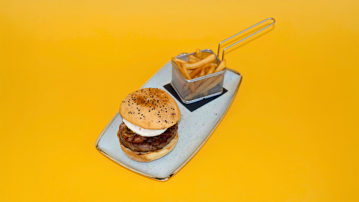 Brioche bun, grilled bacon, fried egg, mushroom, house-made burger sauce (Gluten, Milk, Eggs)